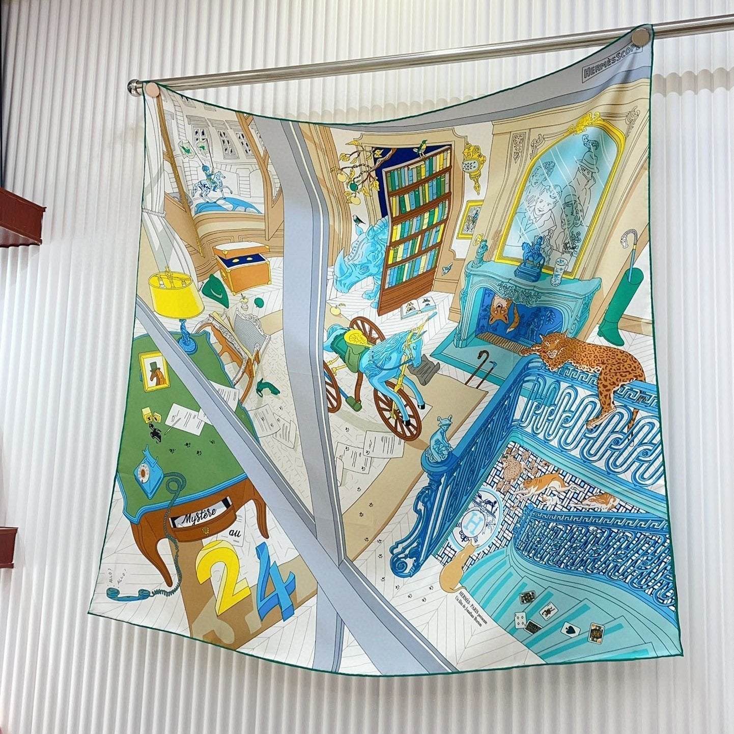 Mystere Au 24 Scarf 90 CM In Grey Colorful Silk Twill 321936