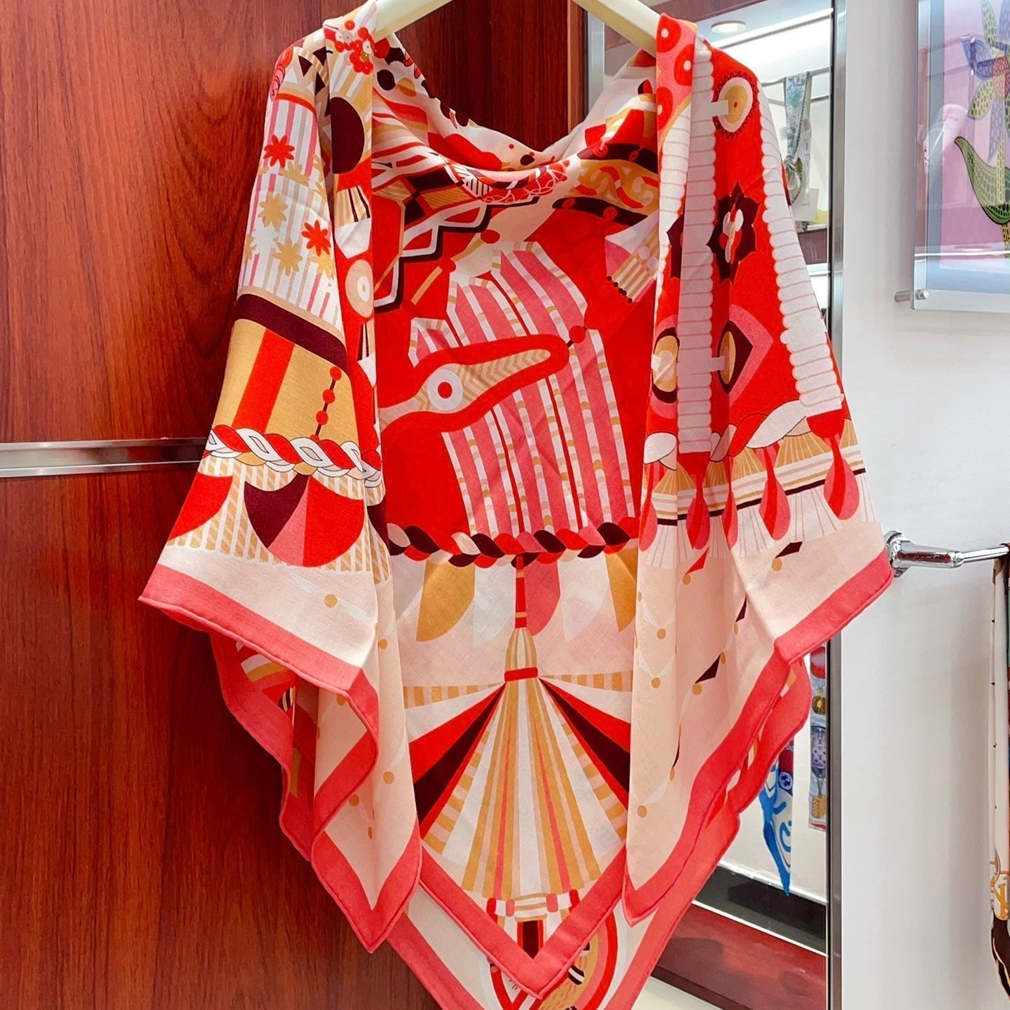 Carré Harnais De Cœur Scarf 140 CM In Red Colorful Cashmere And Silk 335858