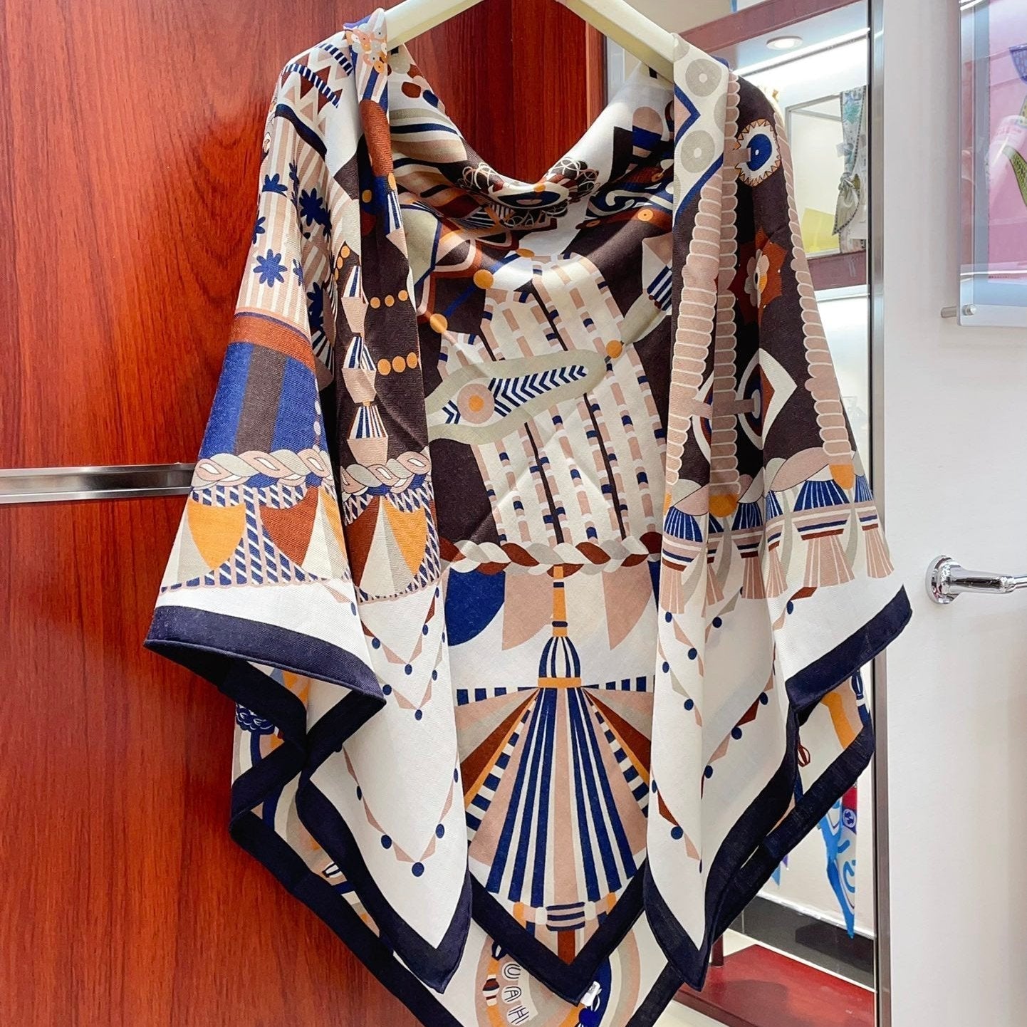 Square Scarf 140 CM In Brown Colorful Cashmere And Silk 327523