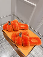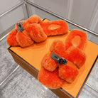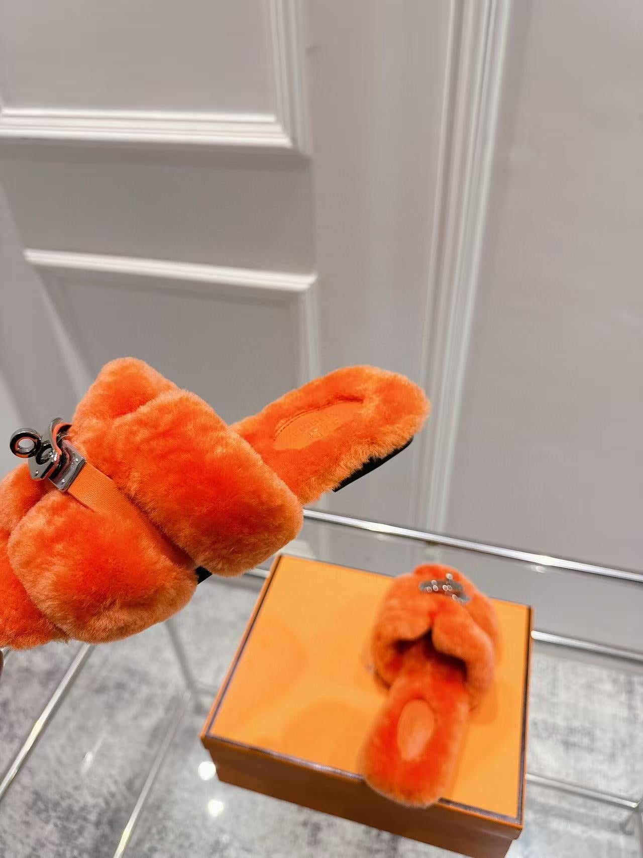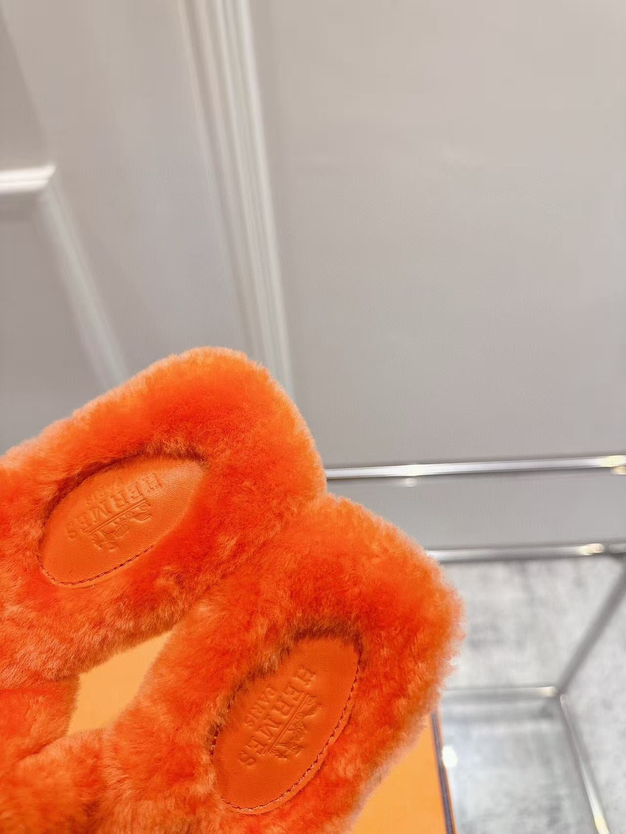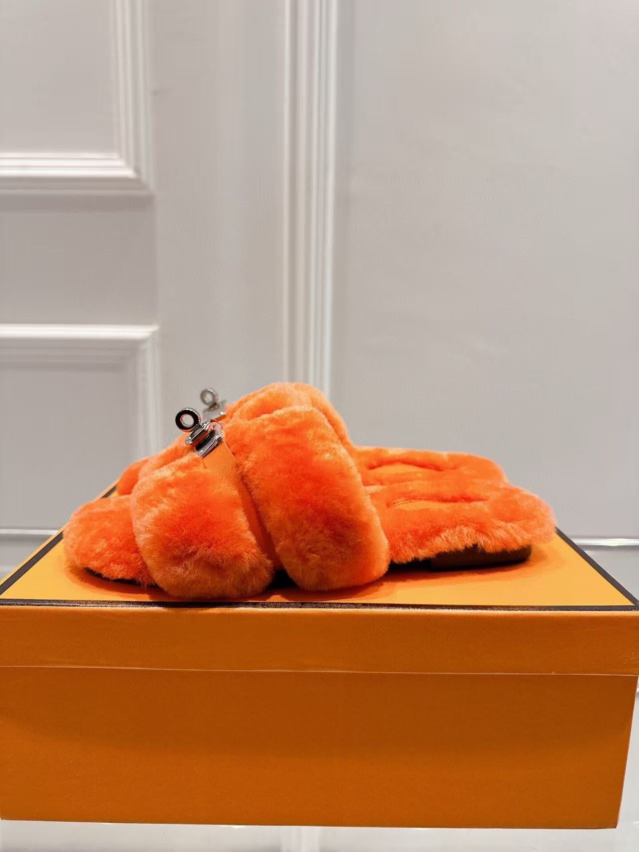 Hermes 2025 Oran Furry Slipper Orange Sheepskin Fur 422273