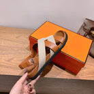 HM 25 Heracles Sandal Brown Calfskin Light Pink Canvas