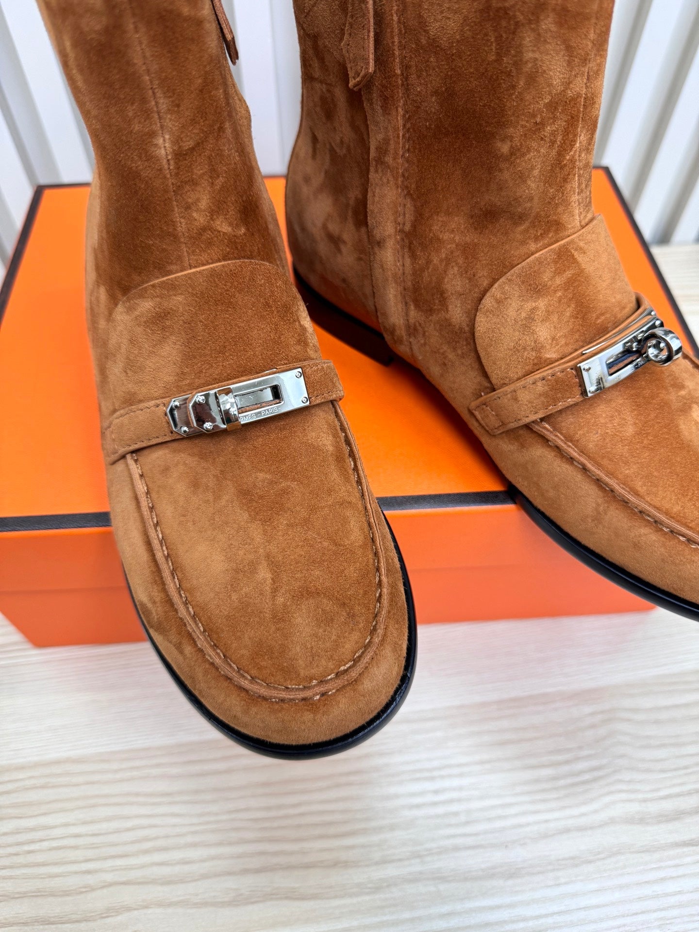 HM 25 Kelly Buckle Ankle Boots Rich Brown Silver Suede 513082