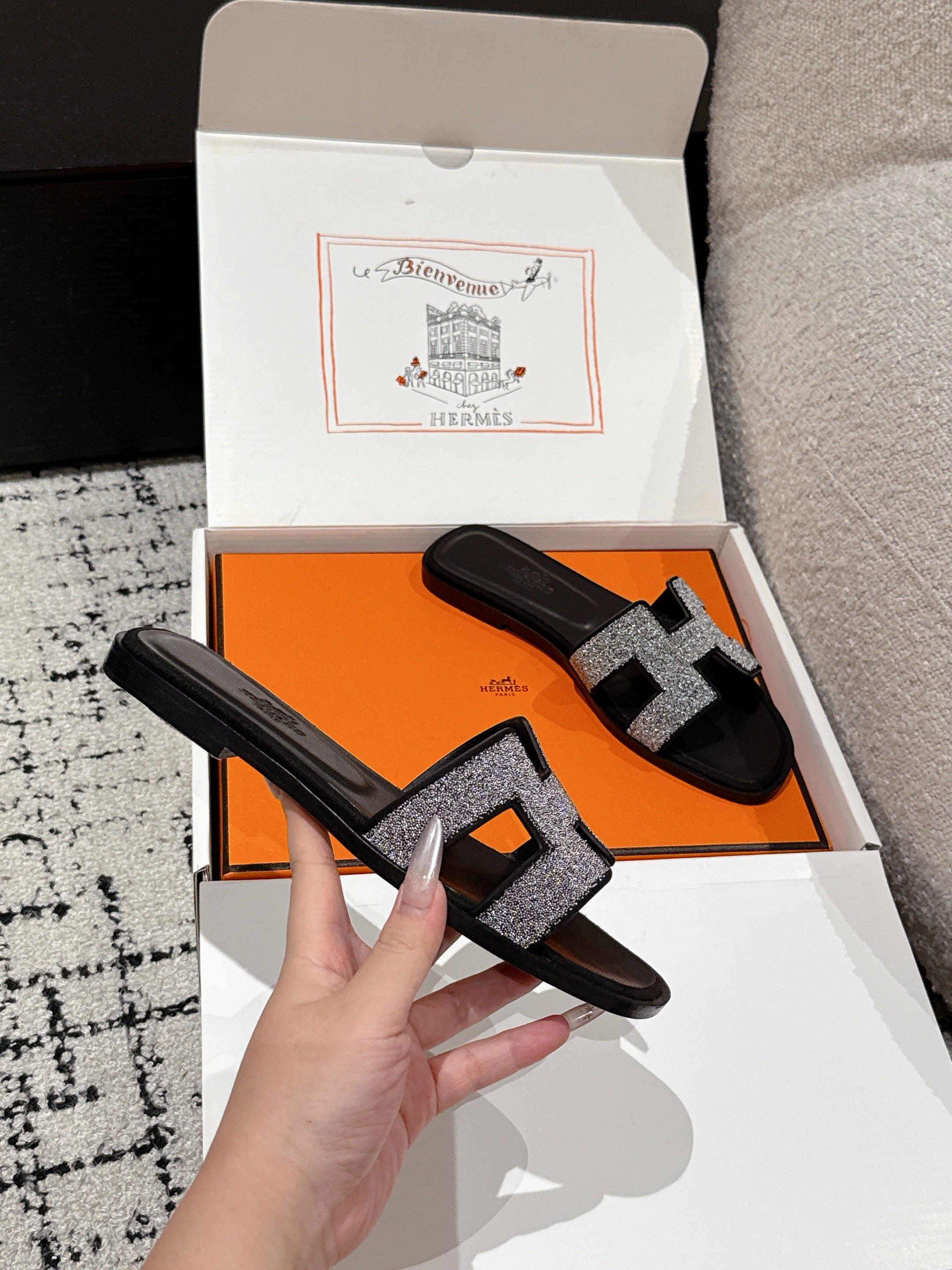 HM 25 Oran Glitter Sandal Black Calfskin