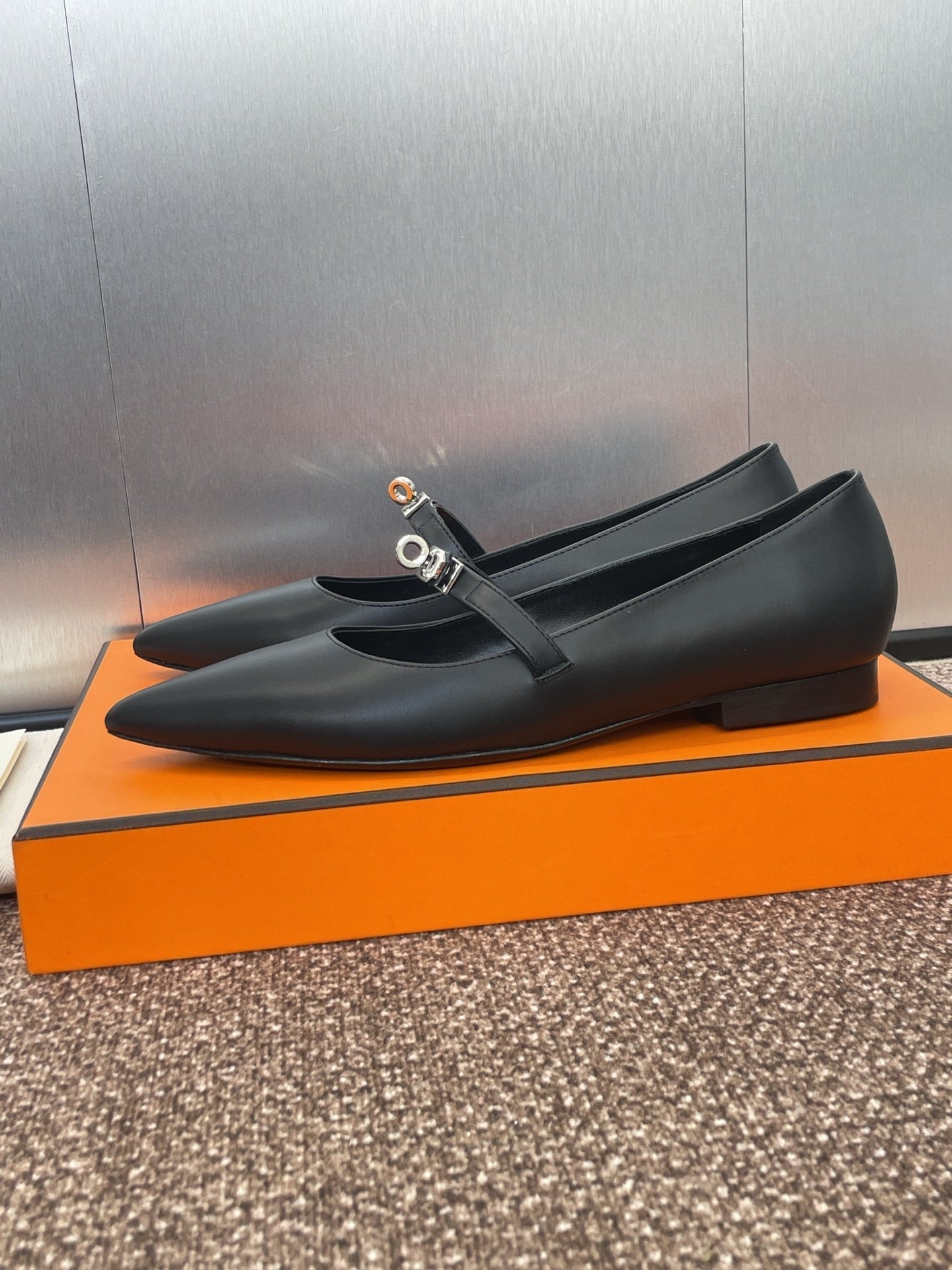 HM 25C Kelly Ballet Flat Noir Calfskin 208268