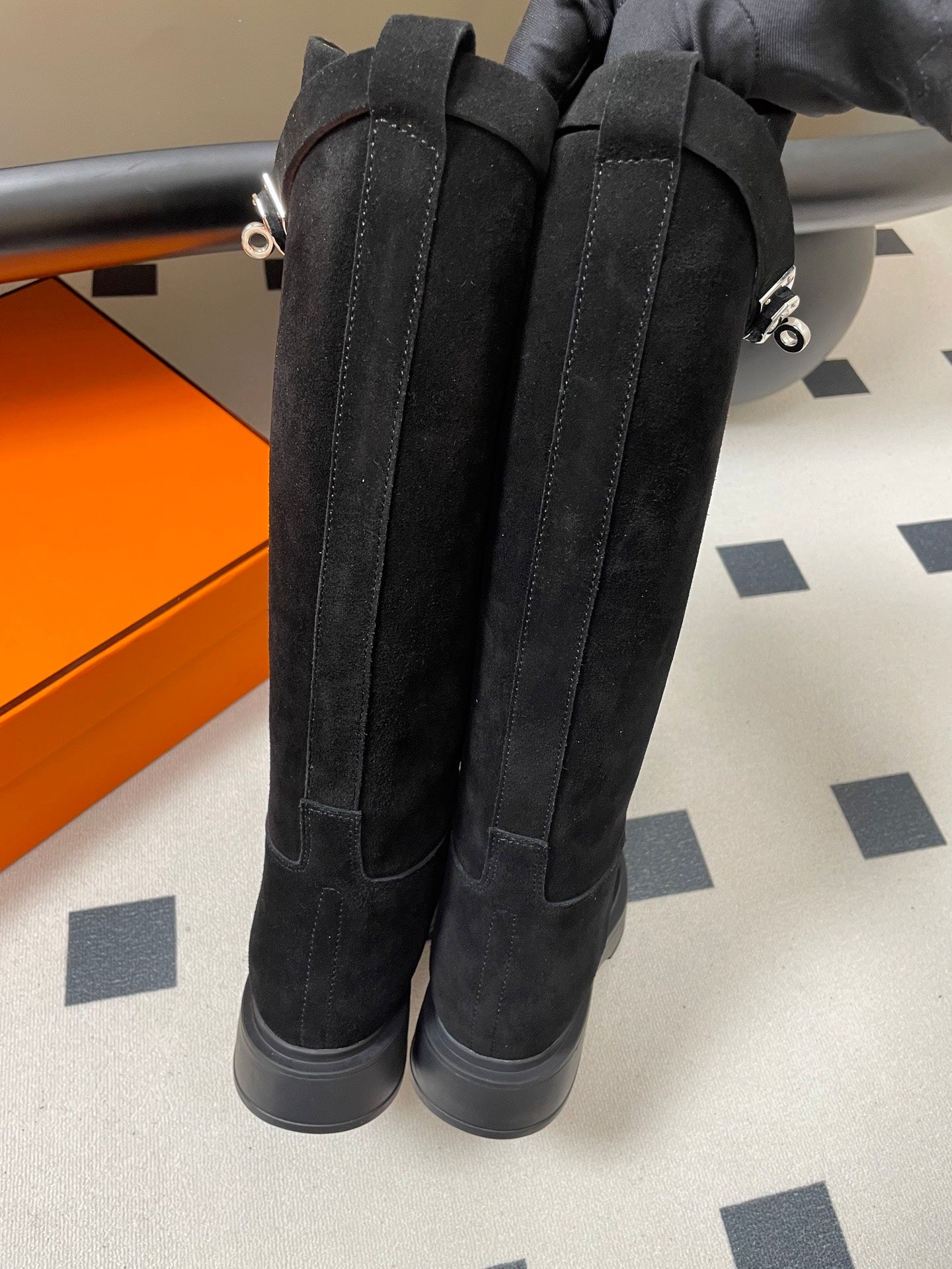 HM Jumping Boots Black Kelly Buckle Suede 423267