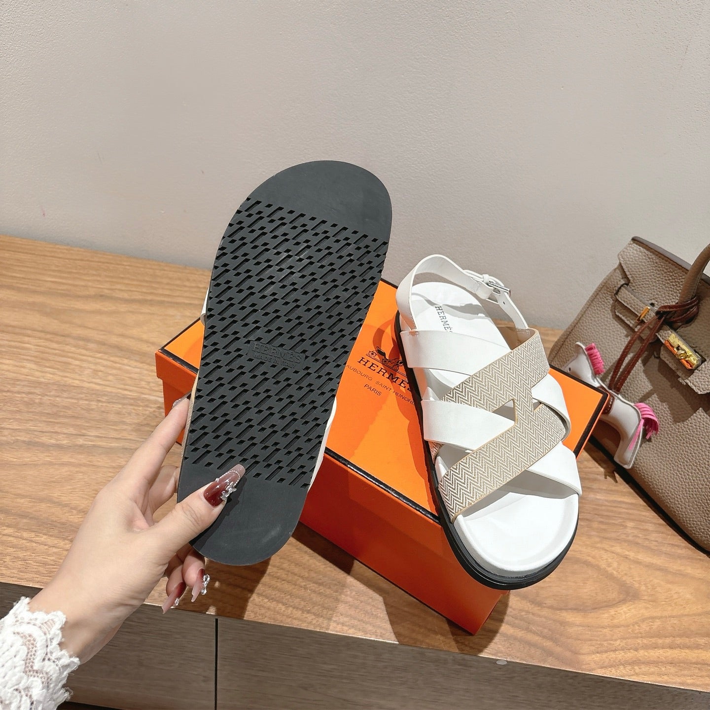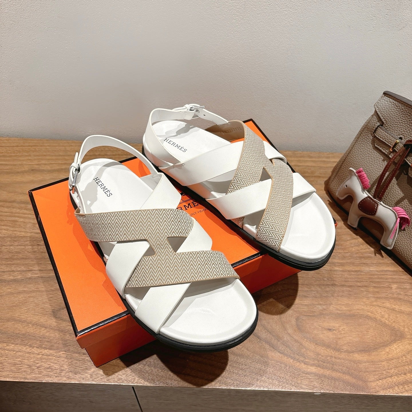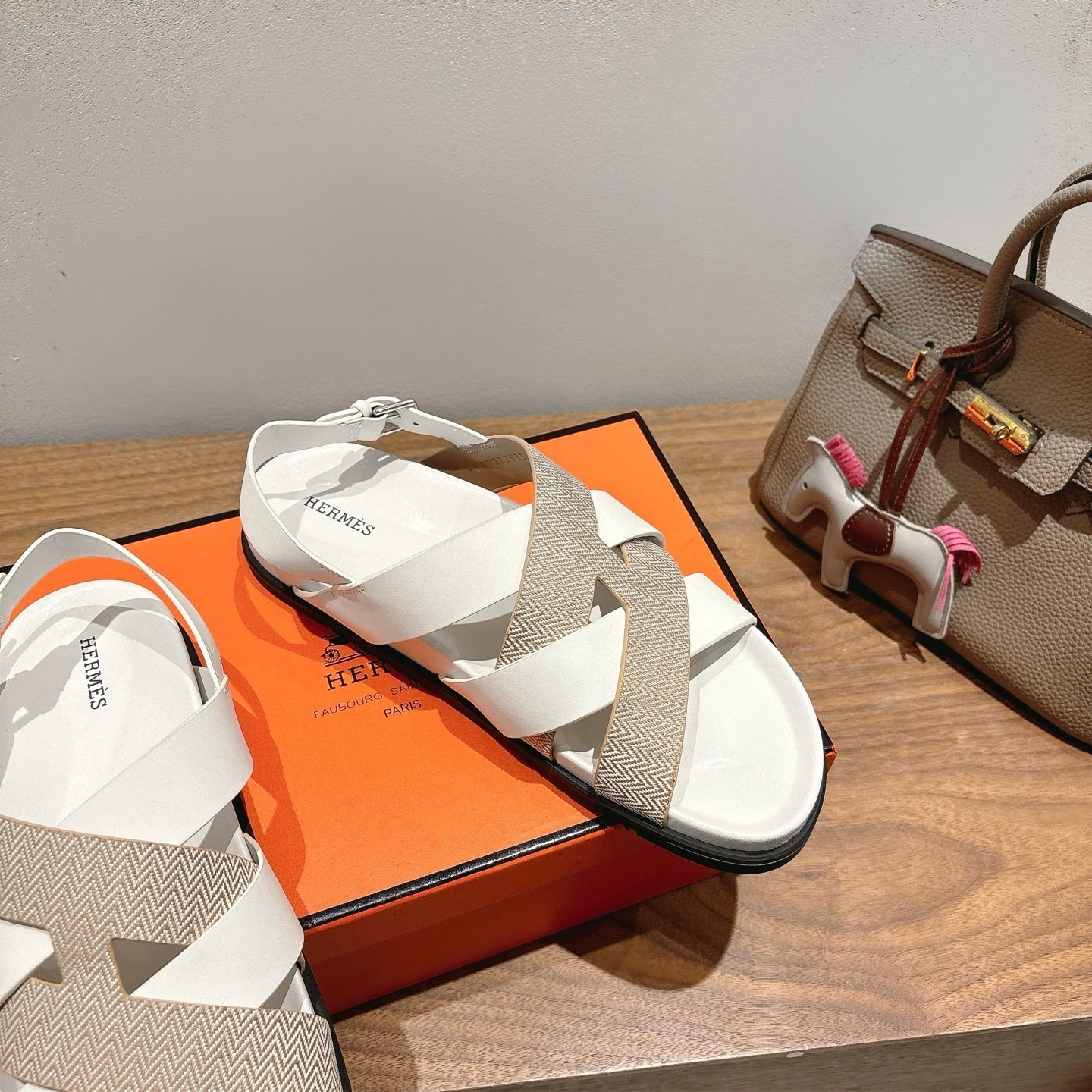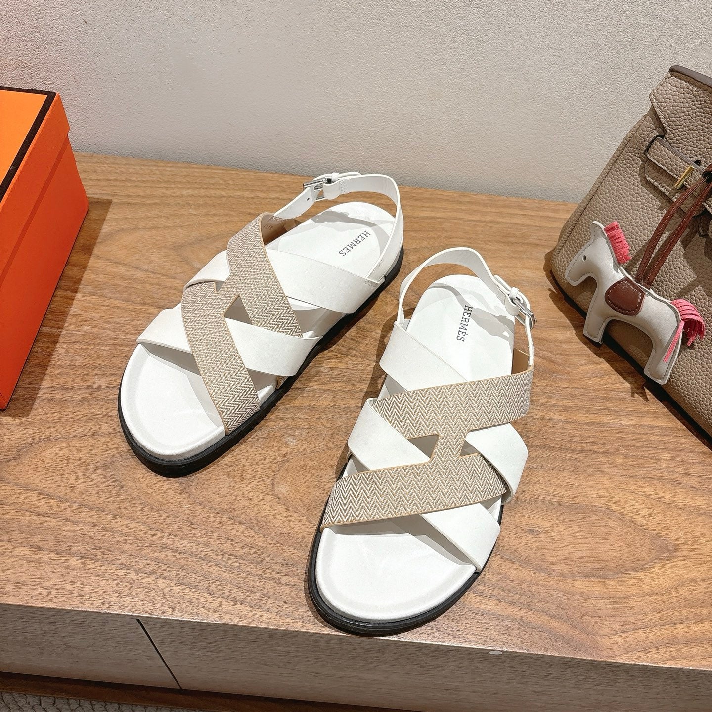 HM 25 Heracles Sandal White Calfskin Grey Canvas