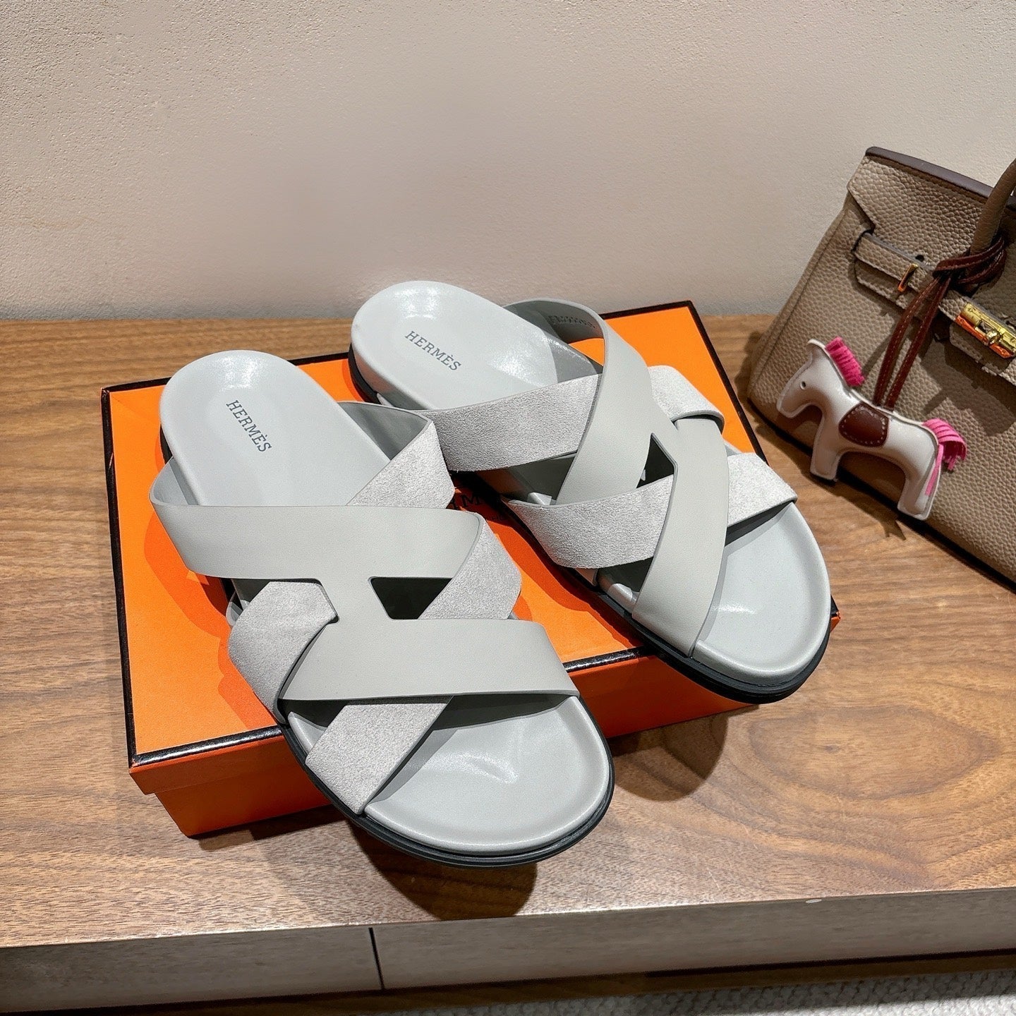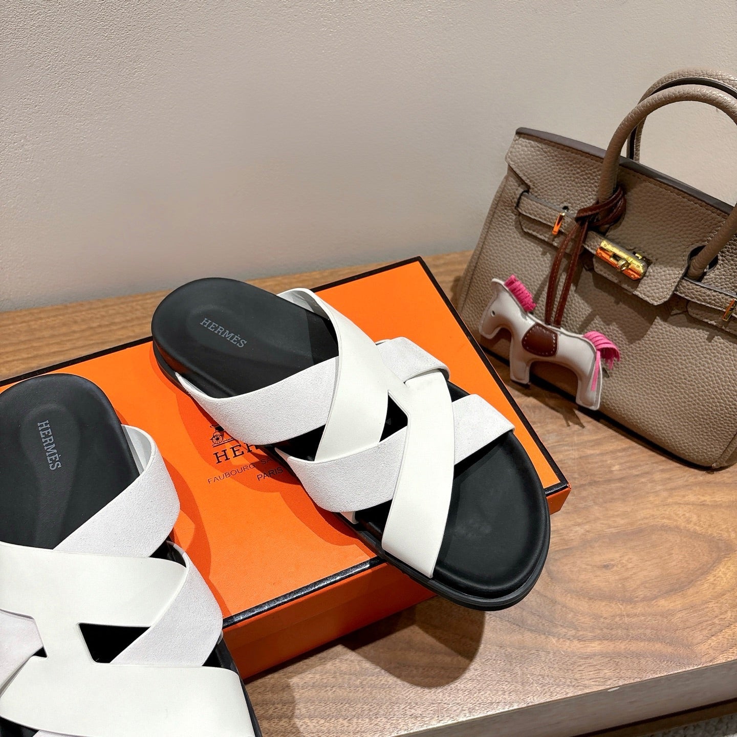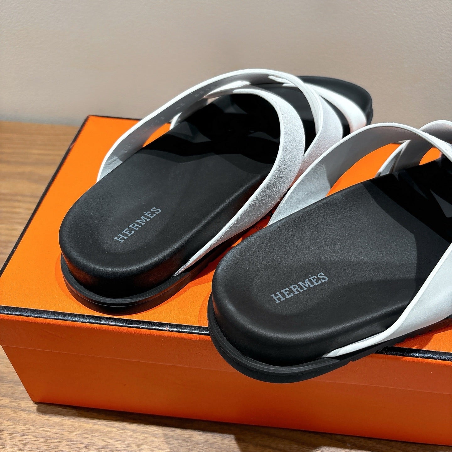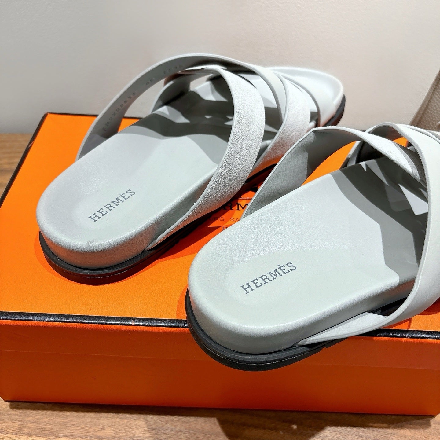 HM 25 Heracles Sandal White Calfskin Grey Canvas