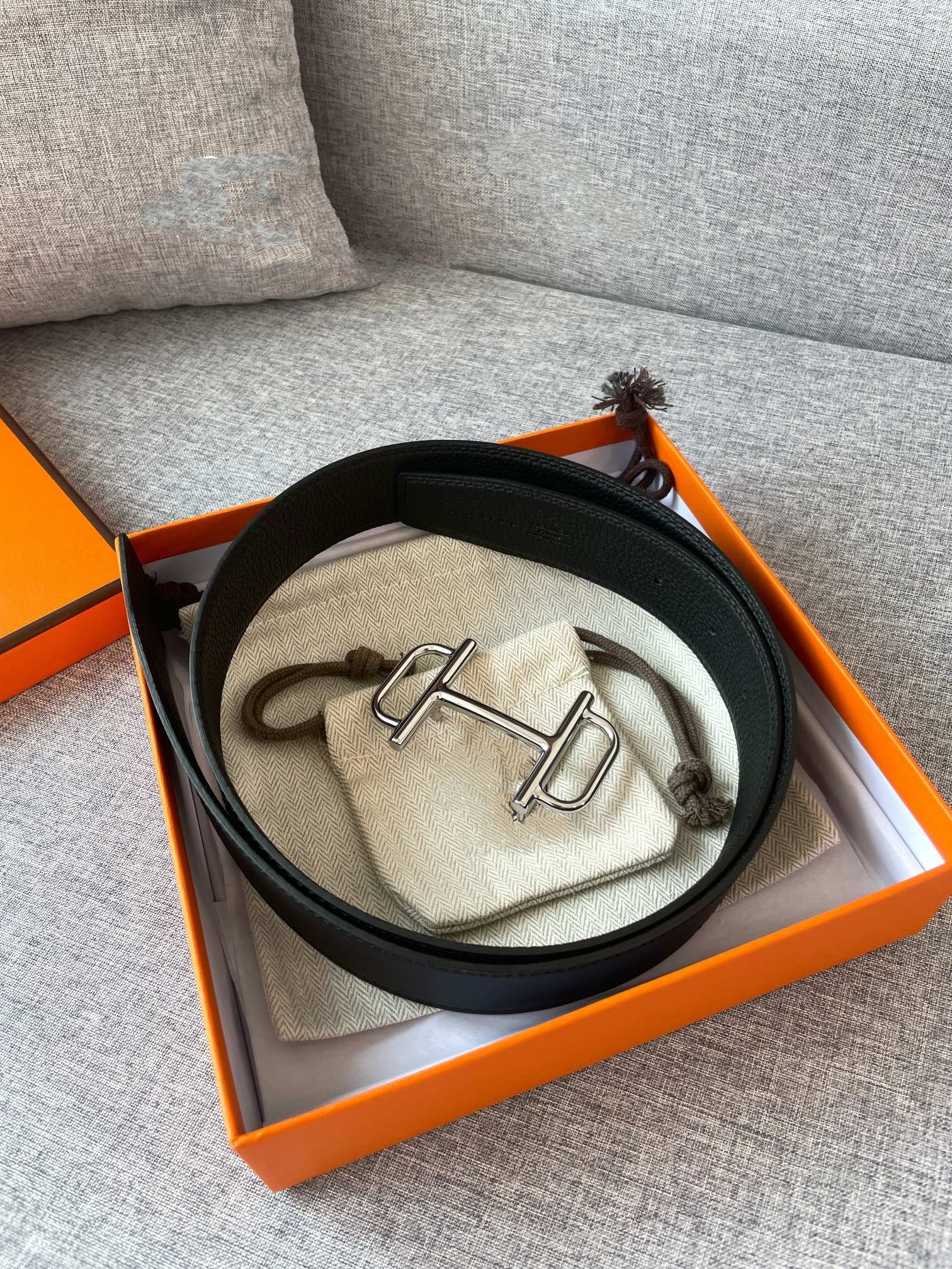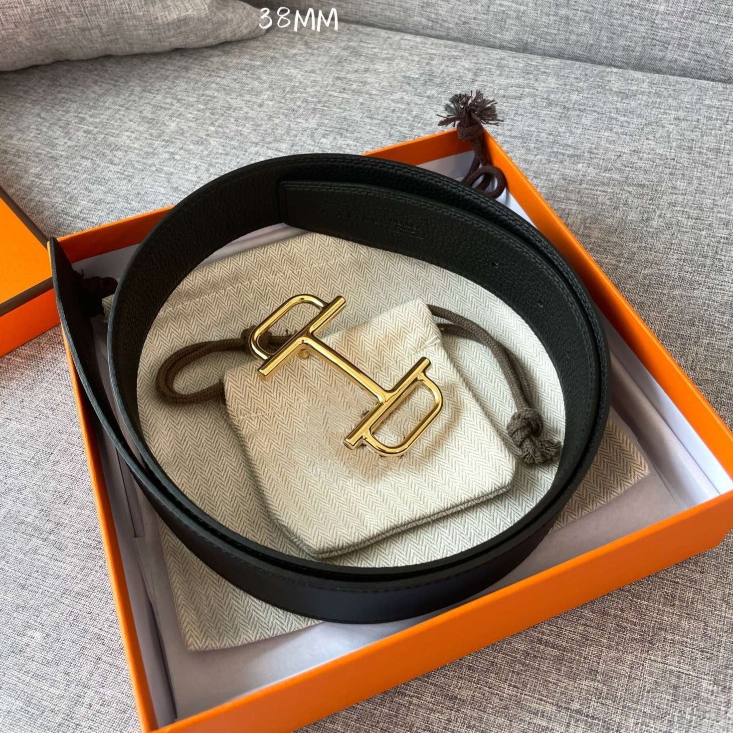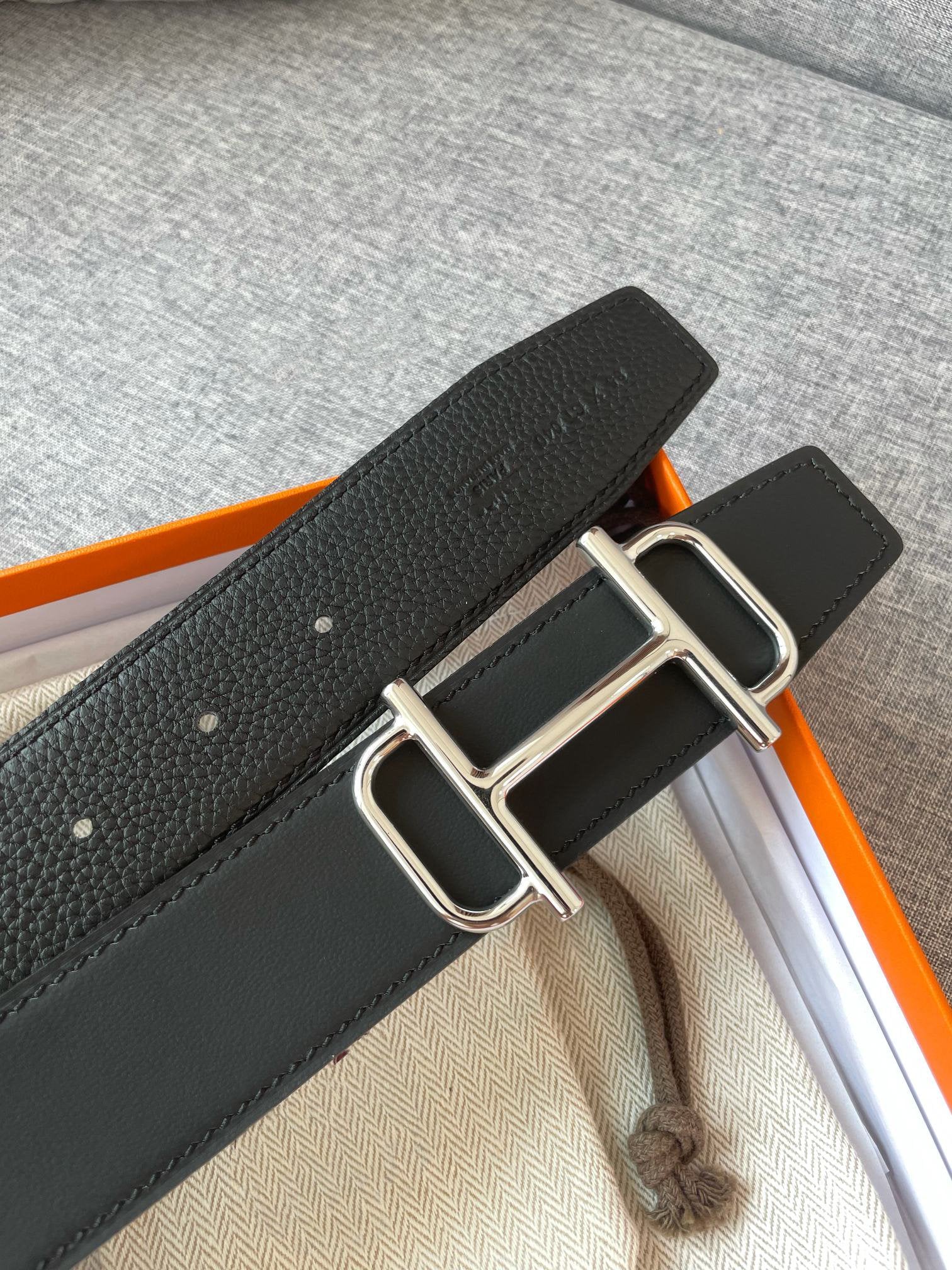 3.8CM BELT H REVERSIBLE BLACK LEATHER