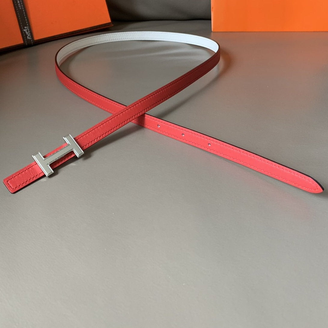 FOCUS BELT SILVER BUCKLE RED AND WHITE REVERSIBLE LEATHER 1.3CM