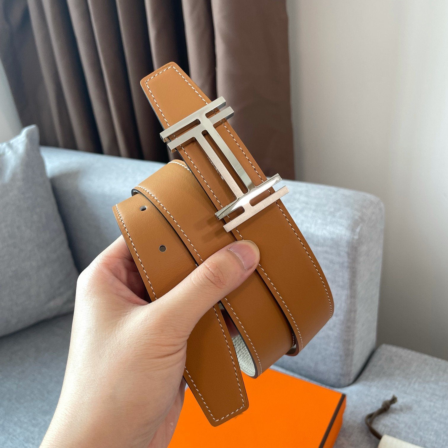 DOUBLE H REVERSIBLE BELT 32MM SILVER BUCKLE GOLD TIN GREY LEATHER