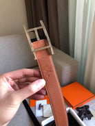 H BELT SILVER BUCKLE BROWN BLACK LEATHER REVERSIBLE 3.2CM
