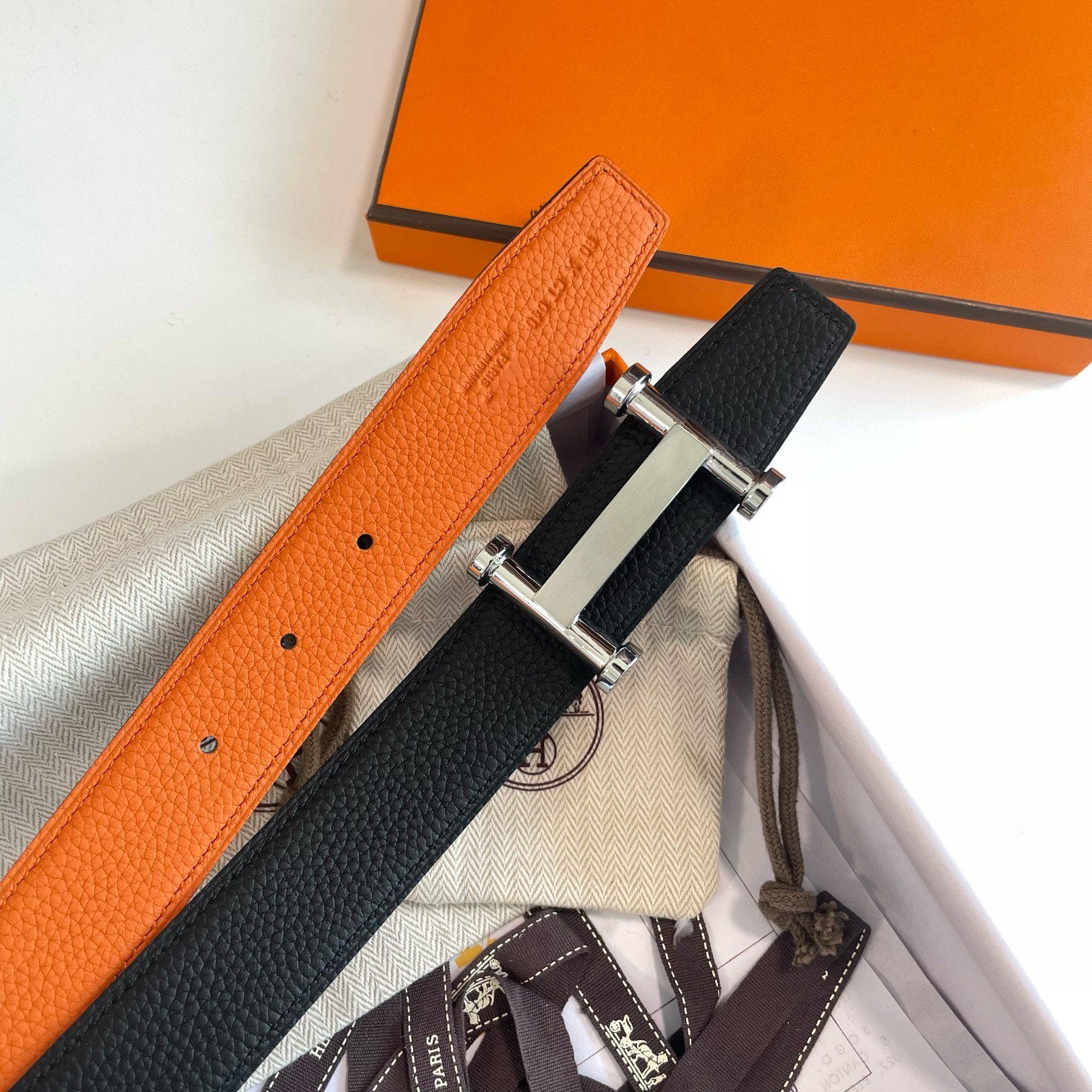 H AGORA BELT 32MM BLACK ORANGE LEATHER