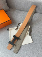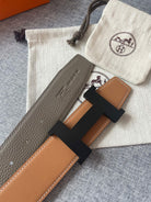 H CONSTANCE REVERSIBLE BELT 38MM BLACK BUCKLE GOLD TIN GREY LEATHER