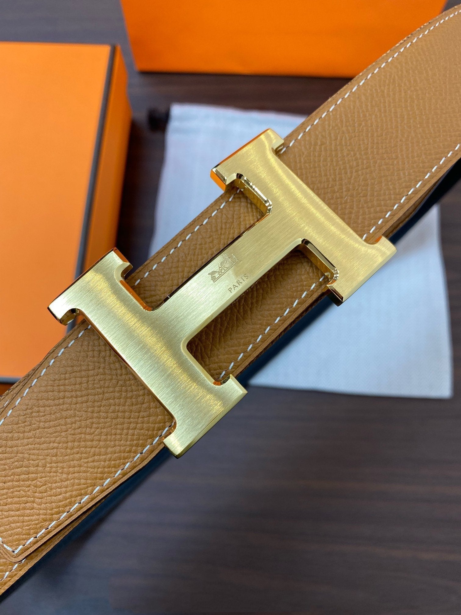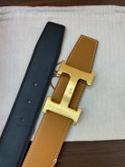 H CONTANCE BELT 38MM GOLD BUCKLE GOLD BLUE LEATHER