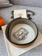 H TUBE BELT 38MM SILVER BUCKLE TIN GREY GOLD LEATHER
