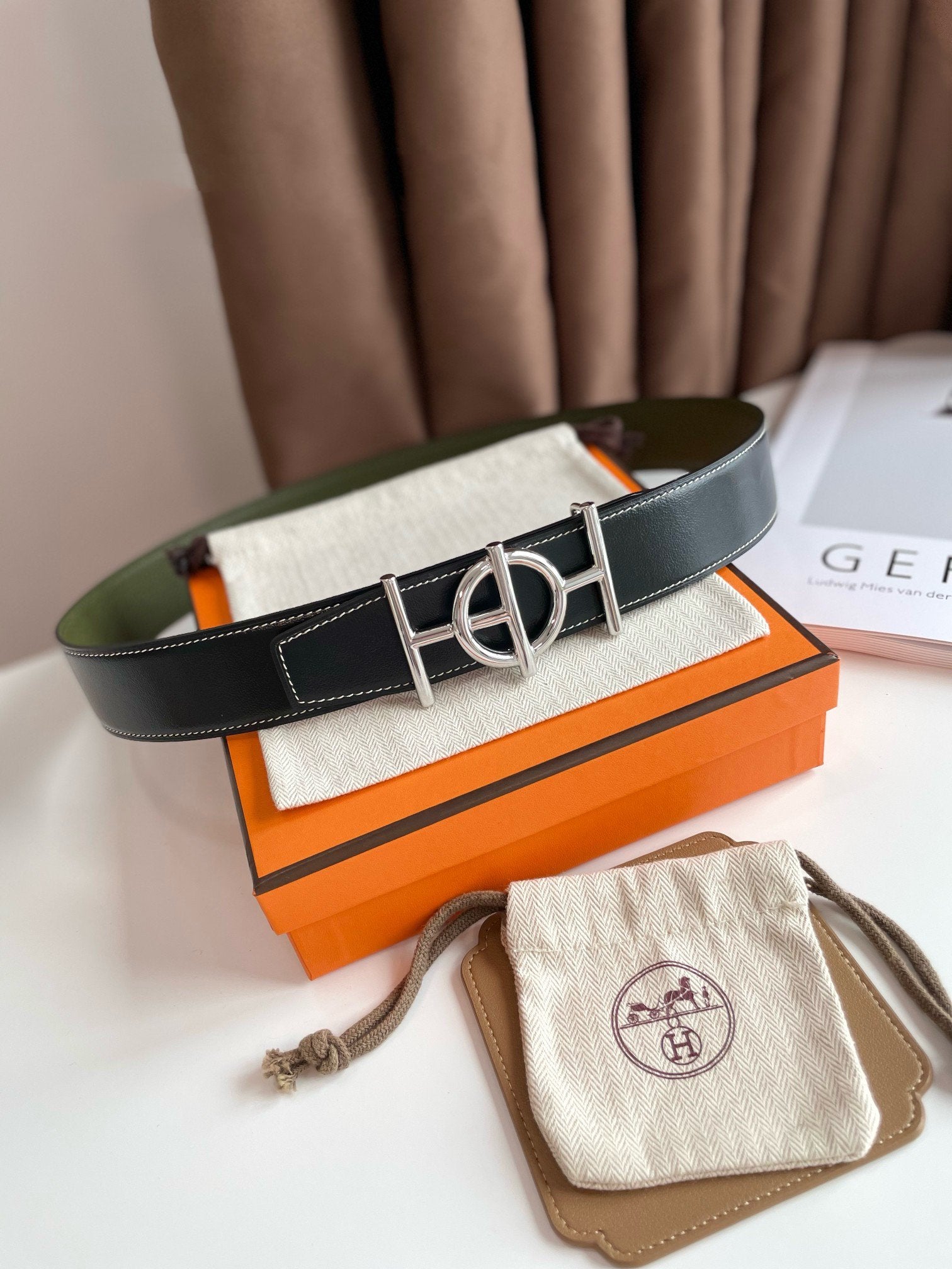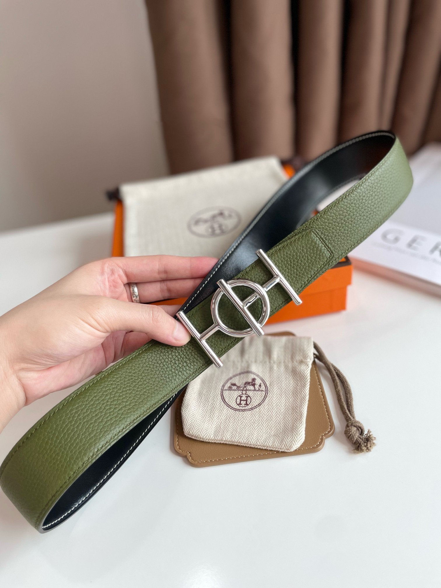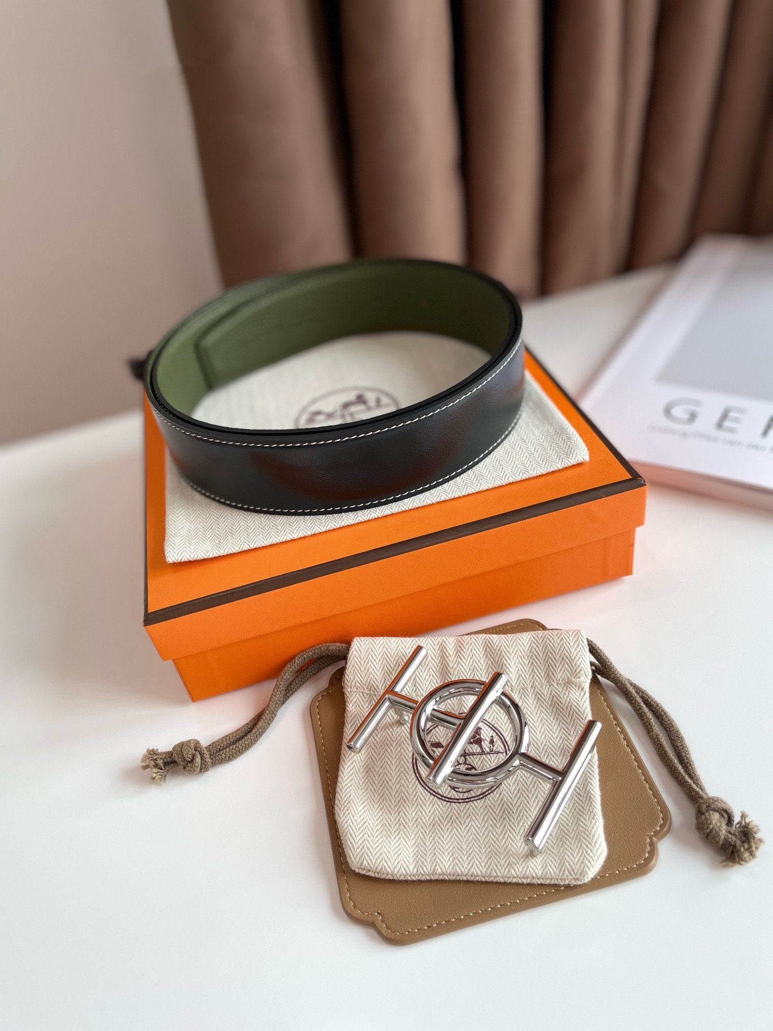 H ULYSSE BELT 38MM SILVER BUCKLE BLACK GREEN LEATHER