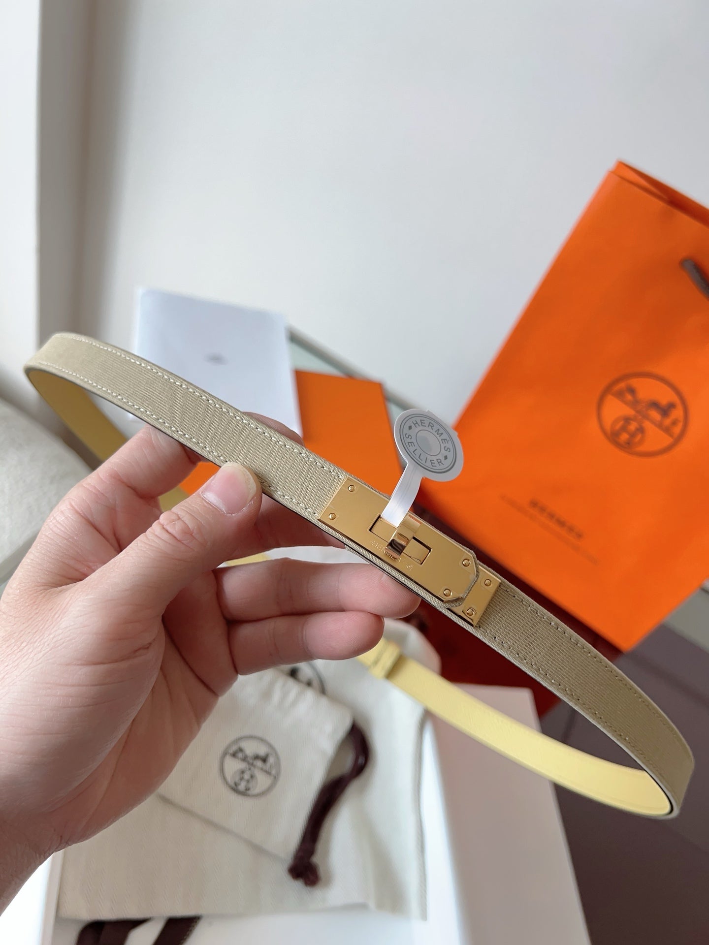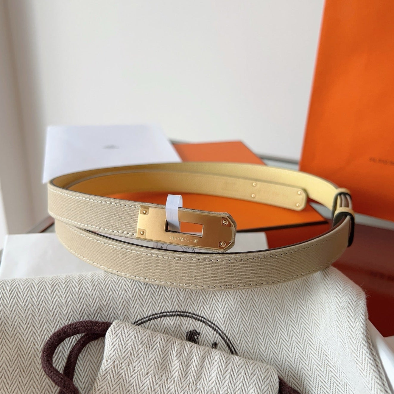 HM Kelly Belt 18mm Beige Canvas Epsom Leather Pink Gold Buckle