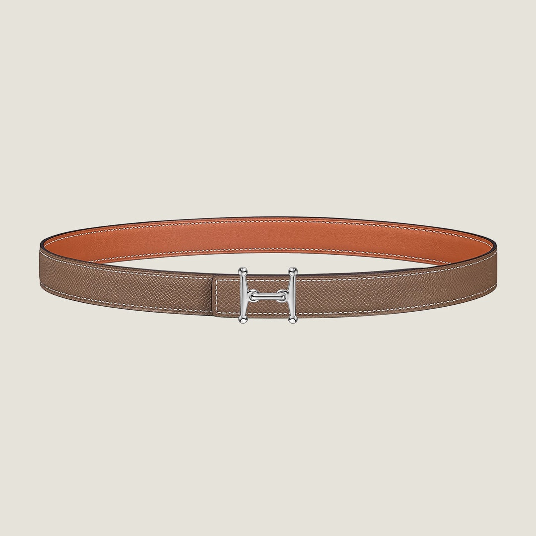 HM Silver Mors H buckle & Reversible 24 mm belt Orange Beige leather 125356