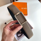 TUBE H BELT BUCKLE & REVERSIBLE KHAKI BROWN AND BLACK LEATHER STRAP 38MM SILVER HARDWARE