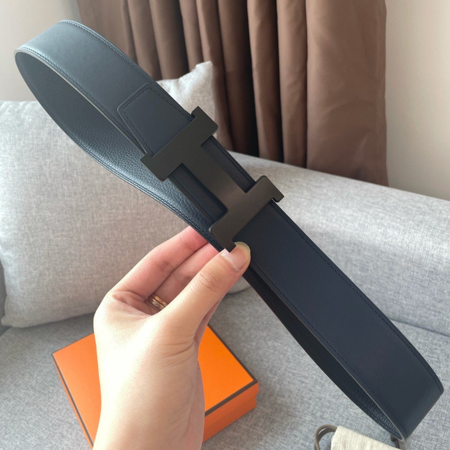 3.8CM BELT H REVERSIBLE BLACK LEATHER