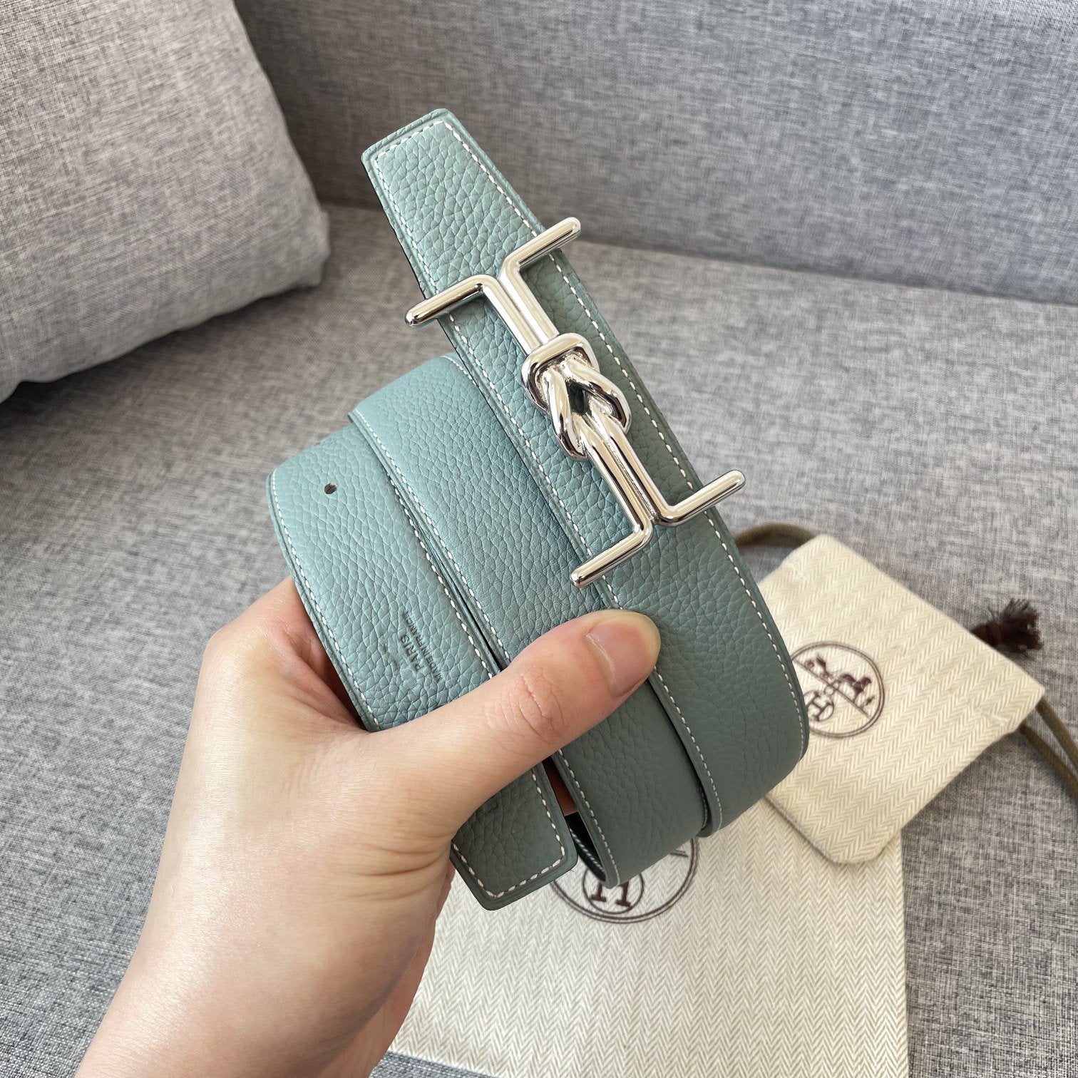 H BELT WOMEN SILVER BUCKLE 24MM ROSE RED LEATHER
