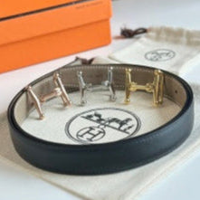 HM Gold H Buckle & Reversible 32mm Belt Beige mix Black leather 124654