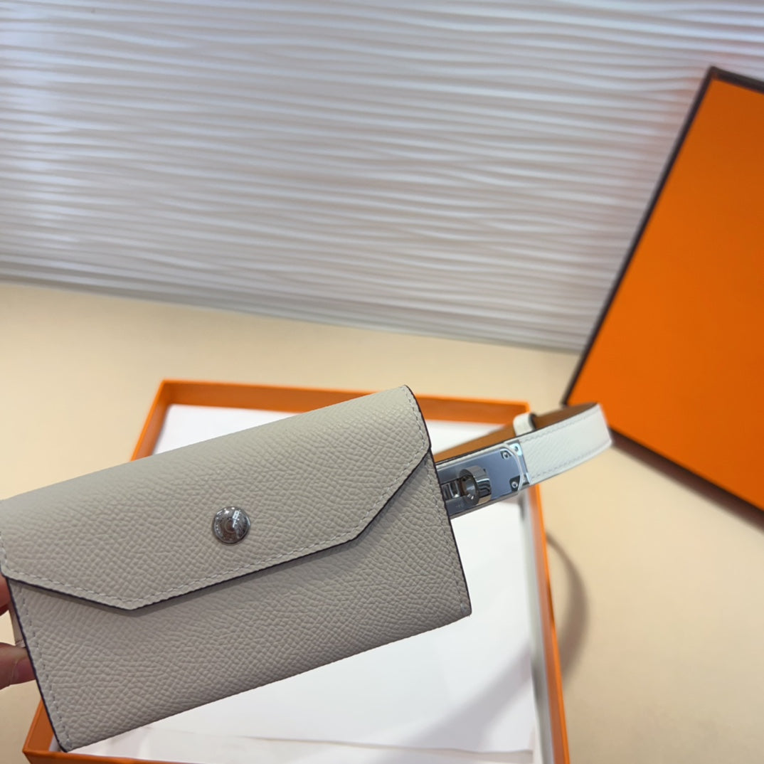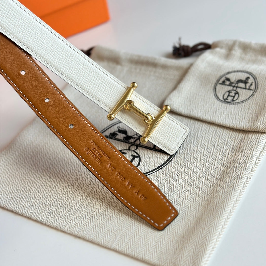 HM KELLY POCKET 18MM BELT WHITE LEATHER GOLD HARDWARE
