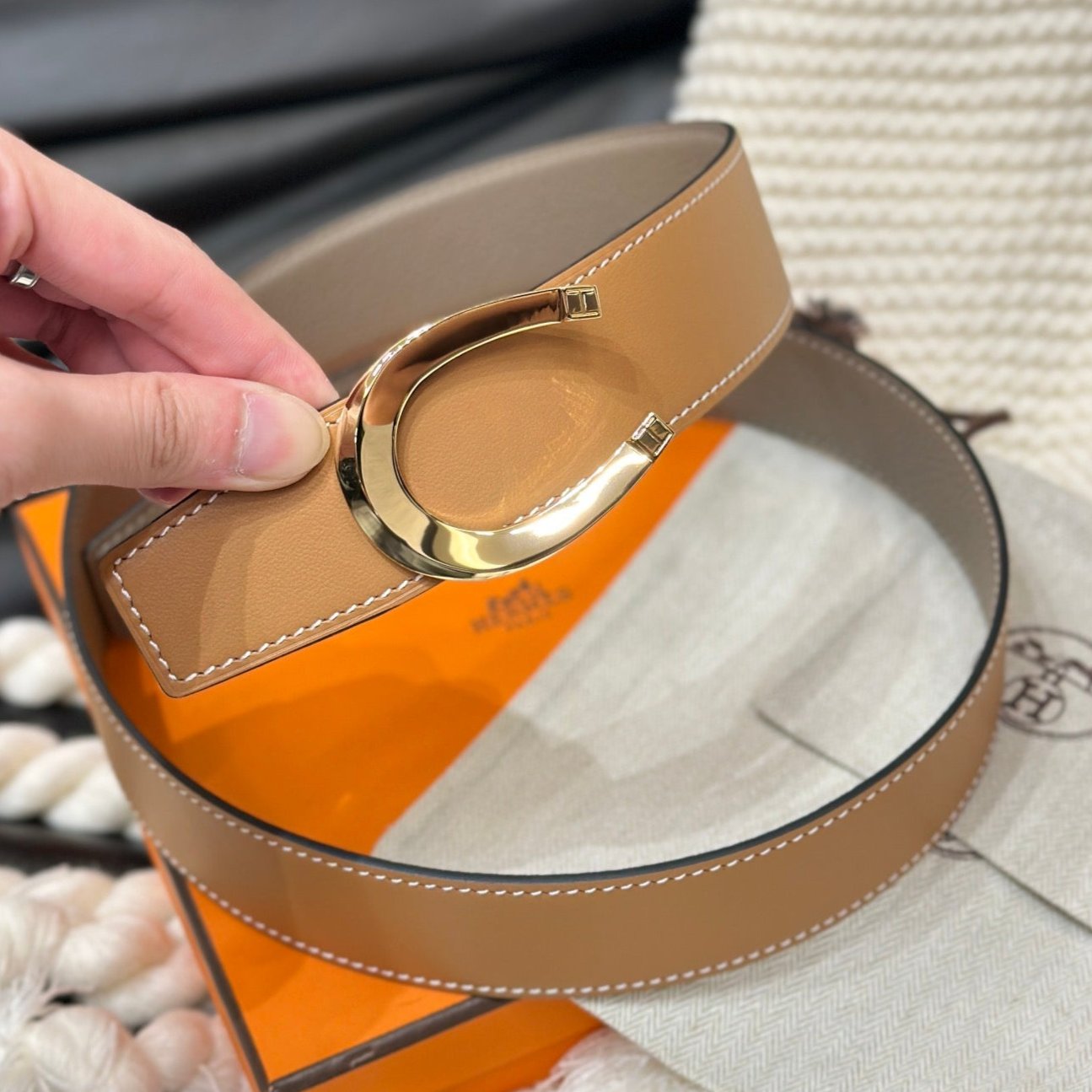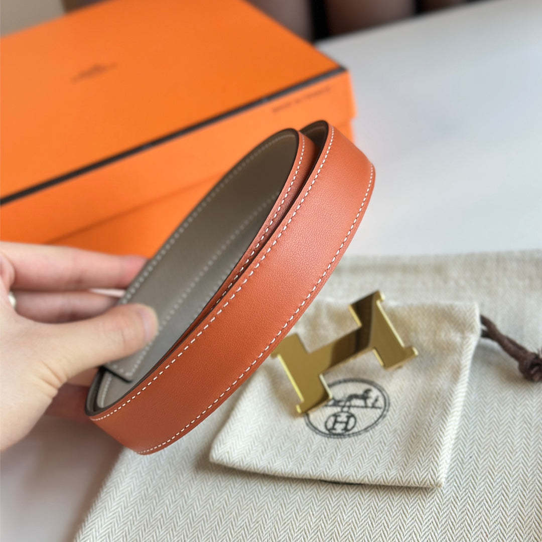 HM TUBE H BELT GOLD BUCKLE & REVERSIBLE GINGER ORANGE LEATHER STRAP 38MM