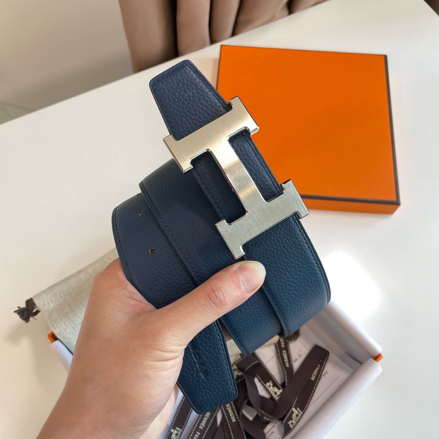 H JUMBO BELT 38MM GOLD BUCKLE DARK BLUE ETOUPE LEATHER
