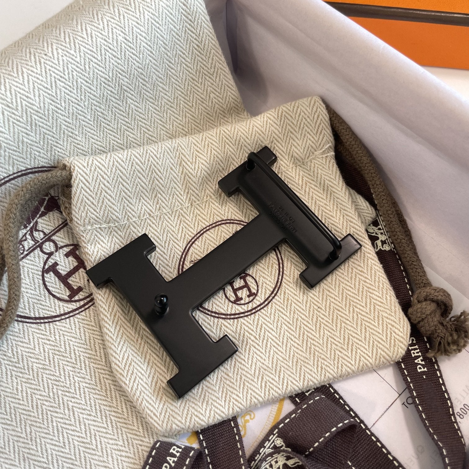 H TONIGHT BELT 38MM BLACK BUCKLE BLACK ETOUPE LEATHER