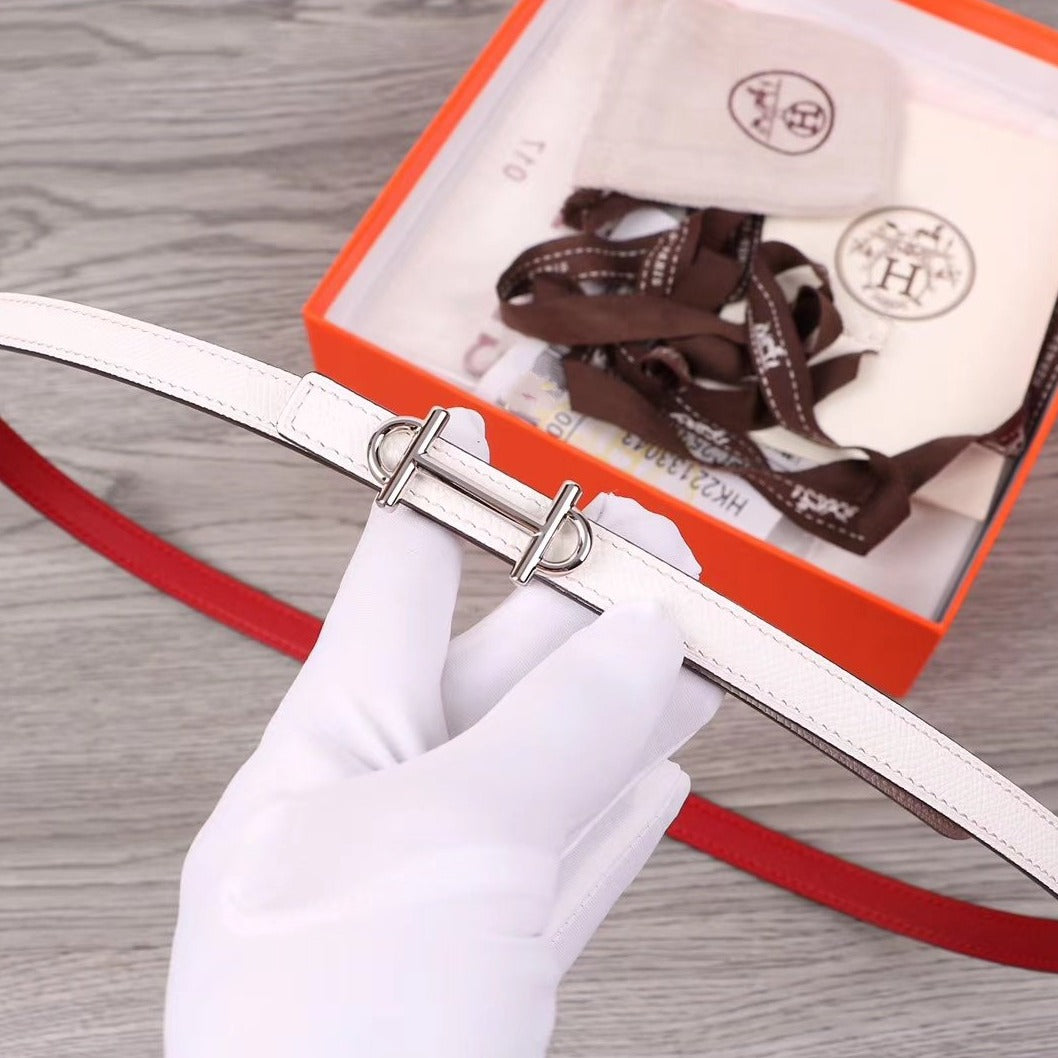 H SILVER BUCKLE WOMEN'S BELT WHITE RED LEATHER STRAP 1.3CM