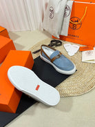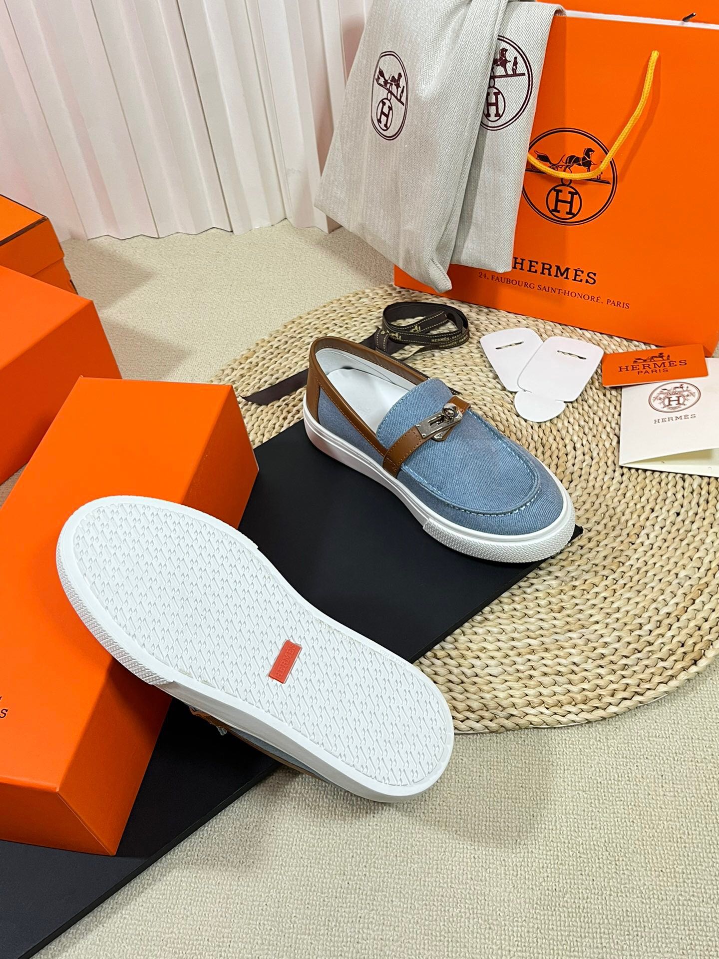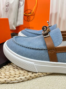 HM Denim Loafer Blue Brown Cowhide Cloth 317047
