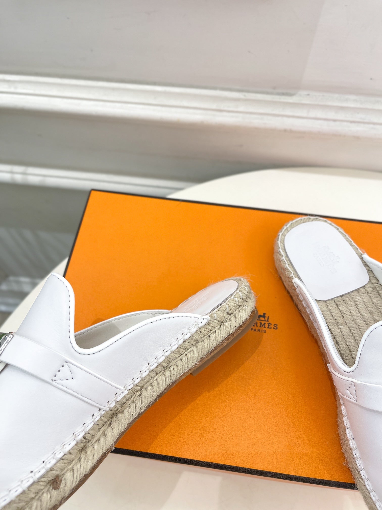 HM Feria Espadrille 20mm White Calfskin And Handwoven Hemp Rope 967989