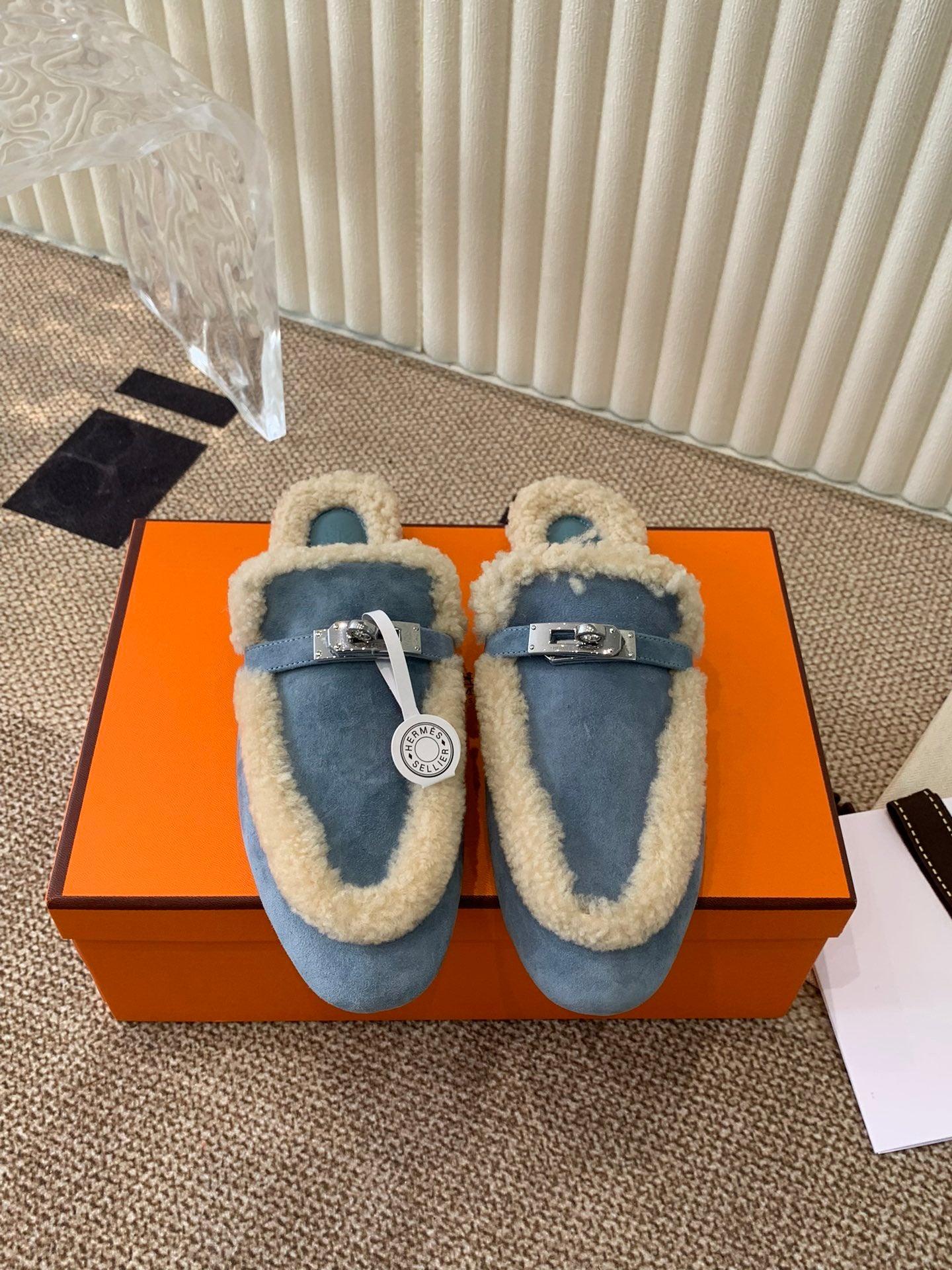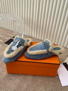 HM Oz Mule In Dark Pastel Blue Suede Lined With Wool Fleece 113199