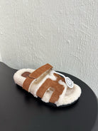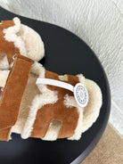 HM Chypre Sandal In Caramel Mix White Suede And Fleece Lining 961140