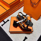 MID - SANDAL BLACK MIX WHITE MIX TAWNY CALFSKIN