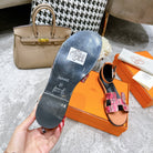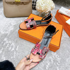 - Material: Sandal in Clafskin with straight cut edges, "H" cut-out detail and thin ankle strap.