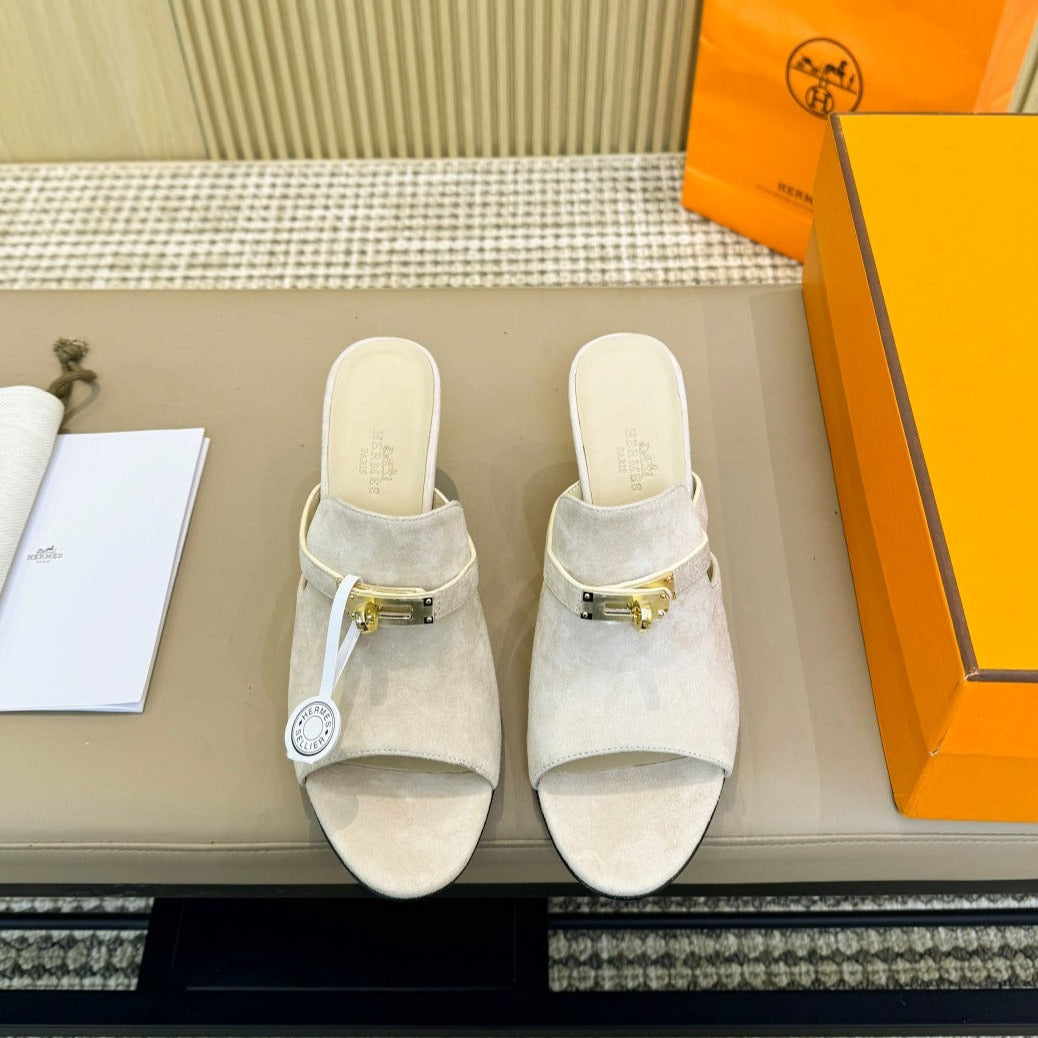 HEDEN MULE 80 WHITE CALFSKIN WITH PATTERN