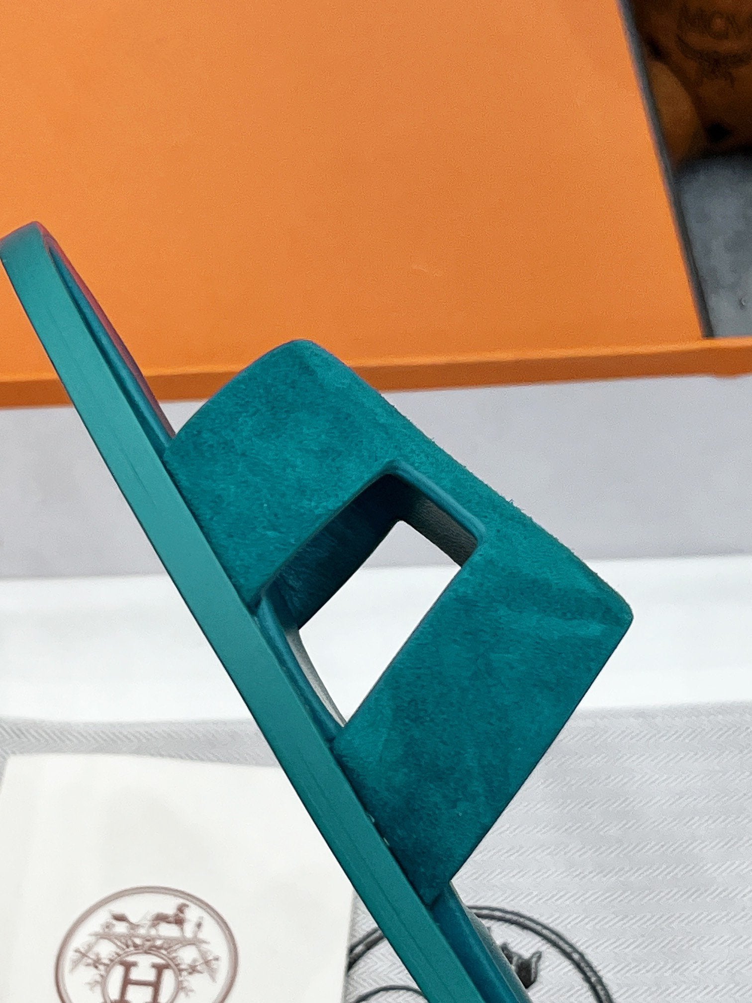 - Material: Sandal in suede goatskin with iconic "H" cut-out.