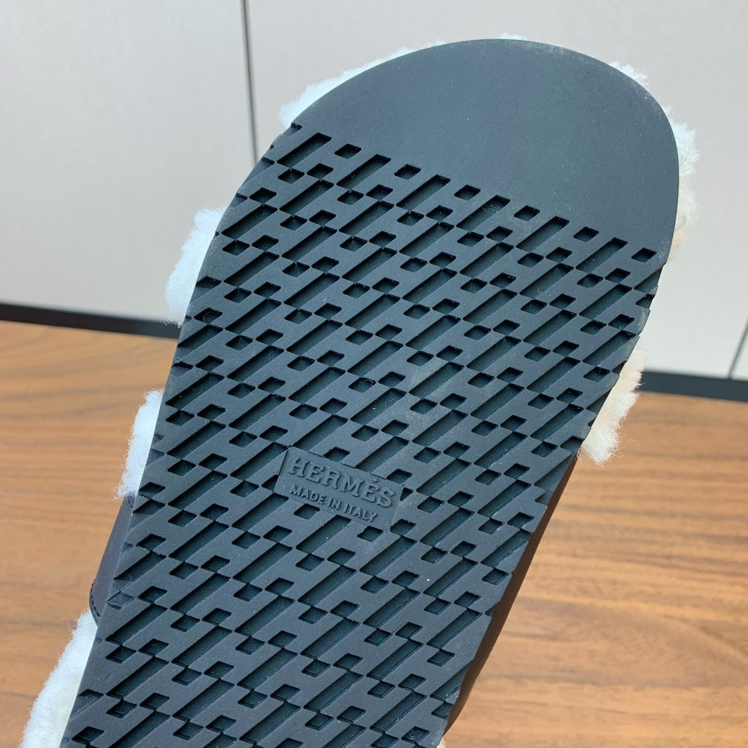 HM Chypre Sandal Black Mix White Wool And Cowhide Lining 984211