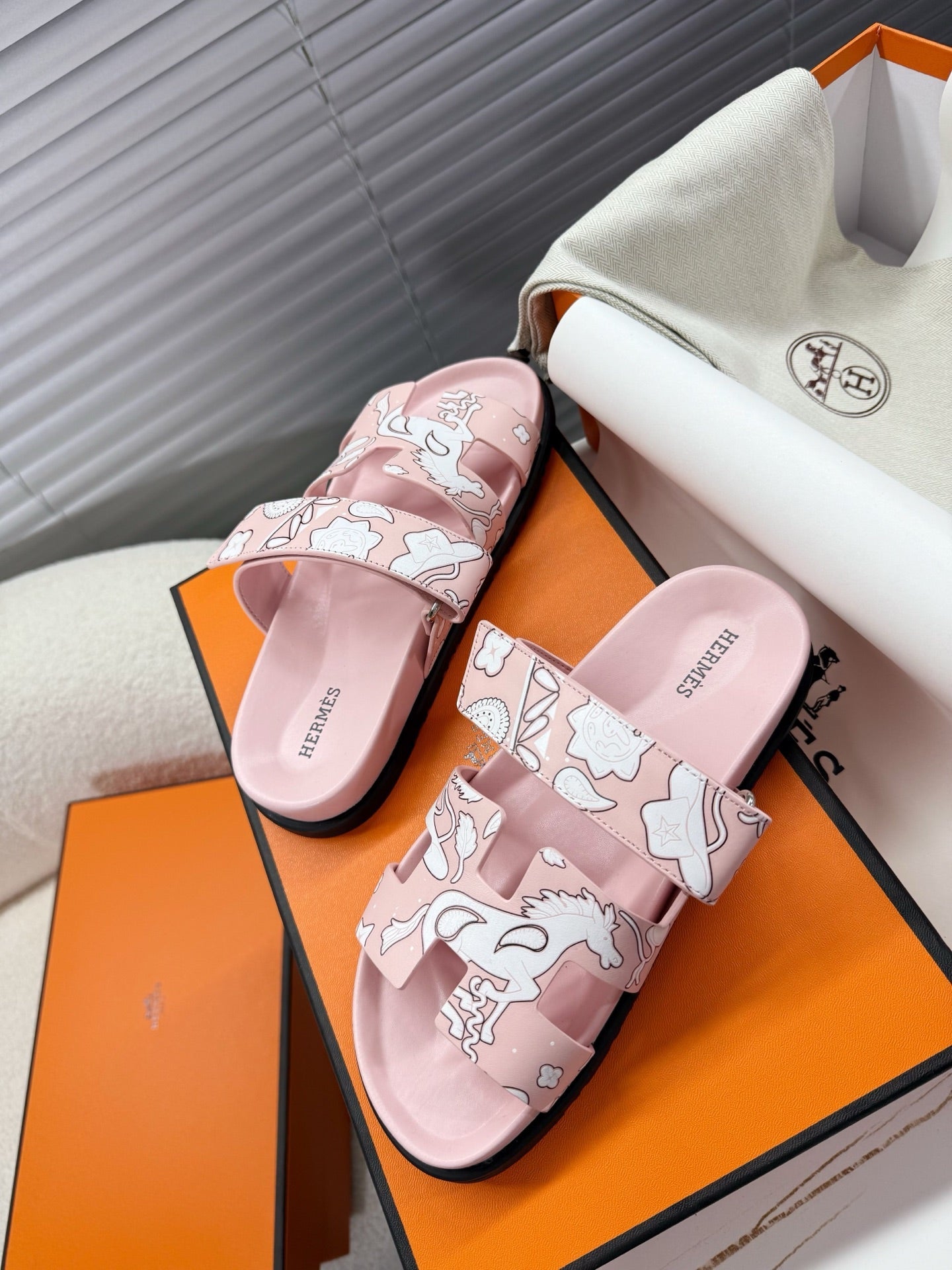 HM Chypre Sandal Pink pastel Pattern Cowhide 205492