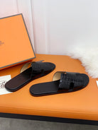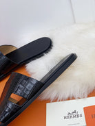 HM IZMIR SANDAL BLACK CROCODILE EMBOSSED CALFSKIN