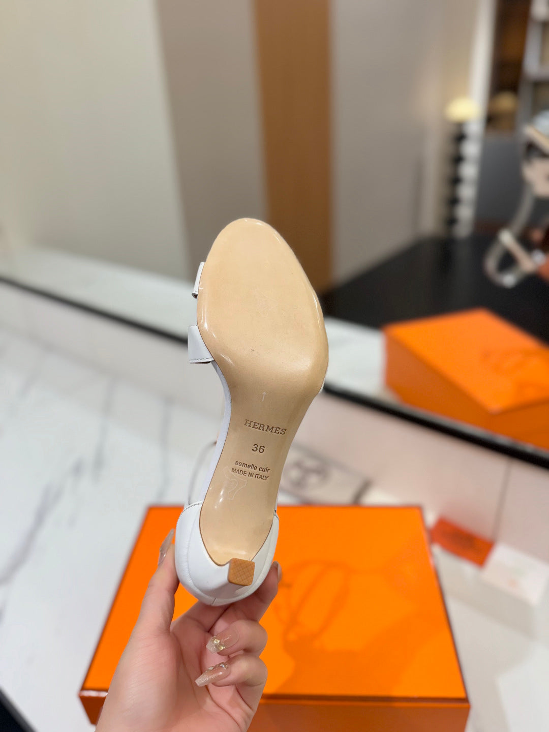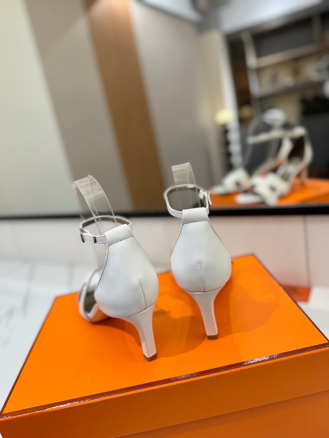HM Joy 65mm Heeled Sandals White Flat Cowhide 294934