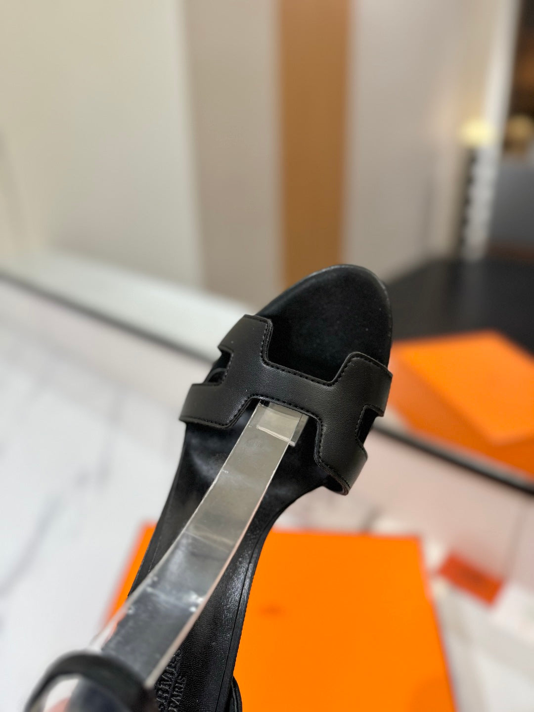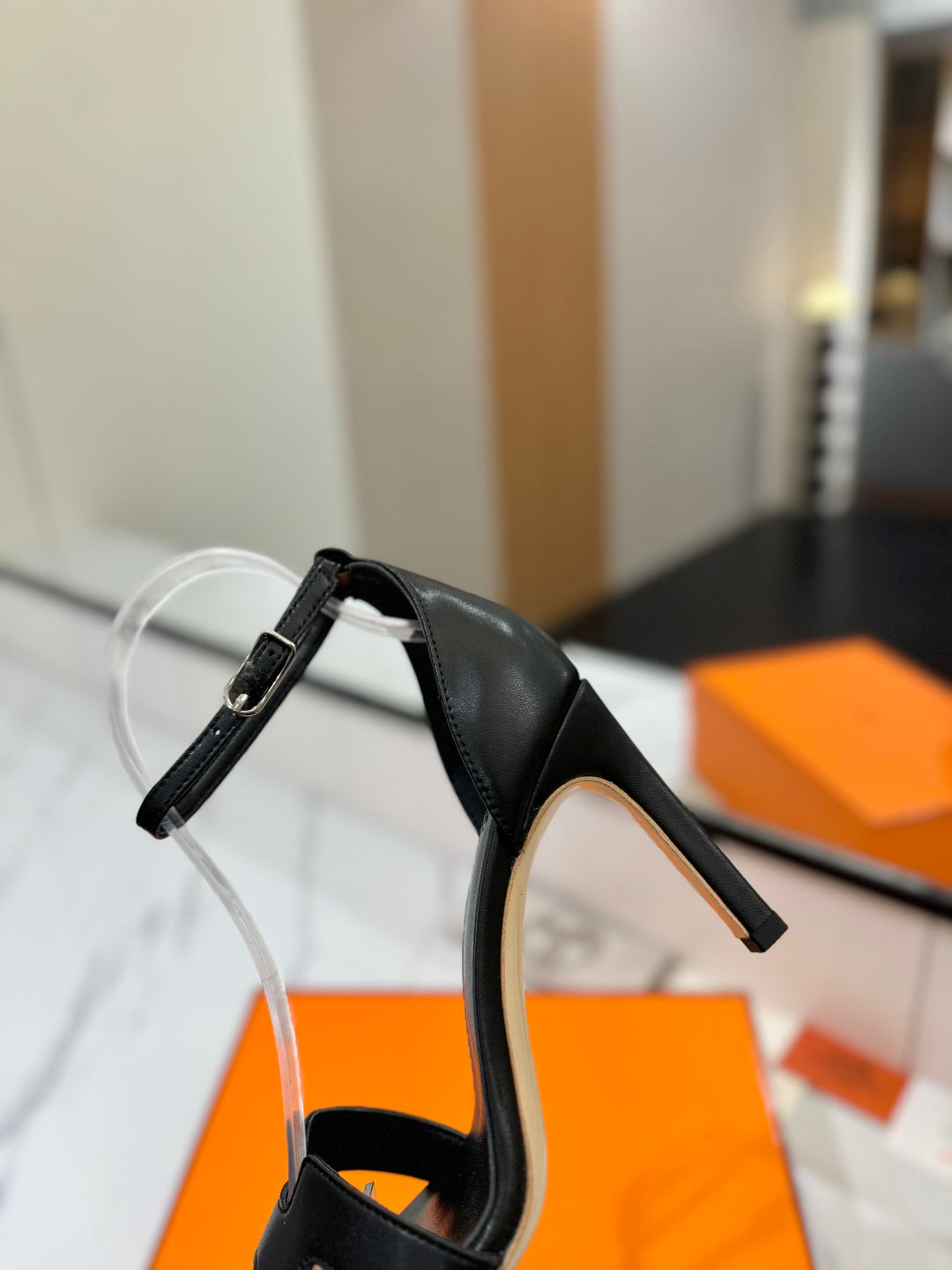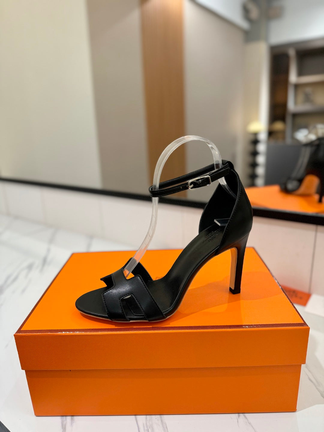 HM Joy 90mm Heeled Sandals Black Flat Cowhide 294917