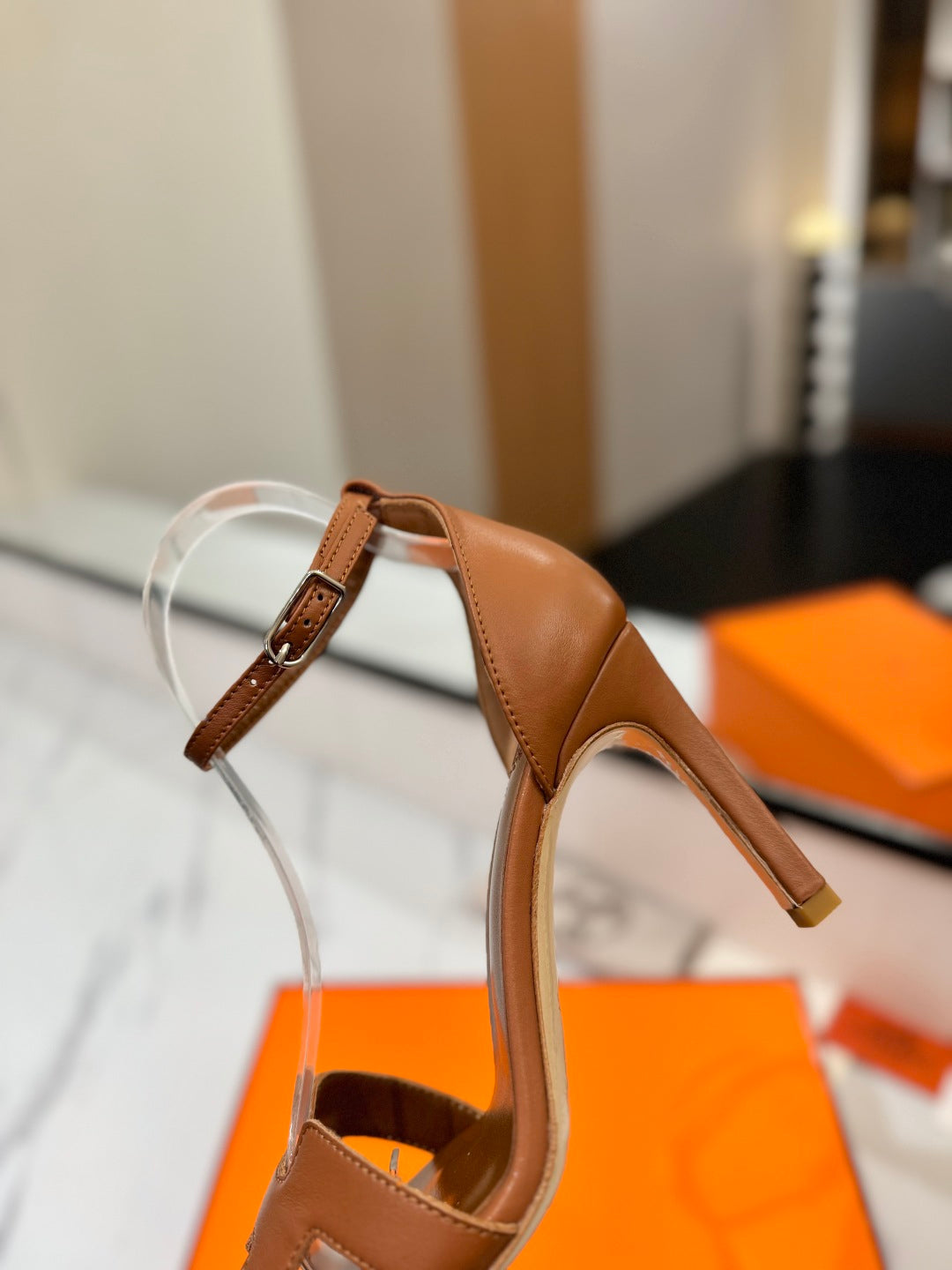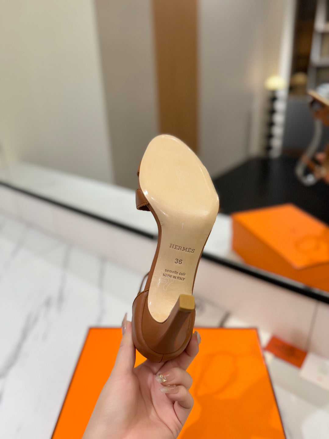 HM Joy 90mm Heeled Sandals Brown Flat Cowhide 294919