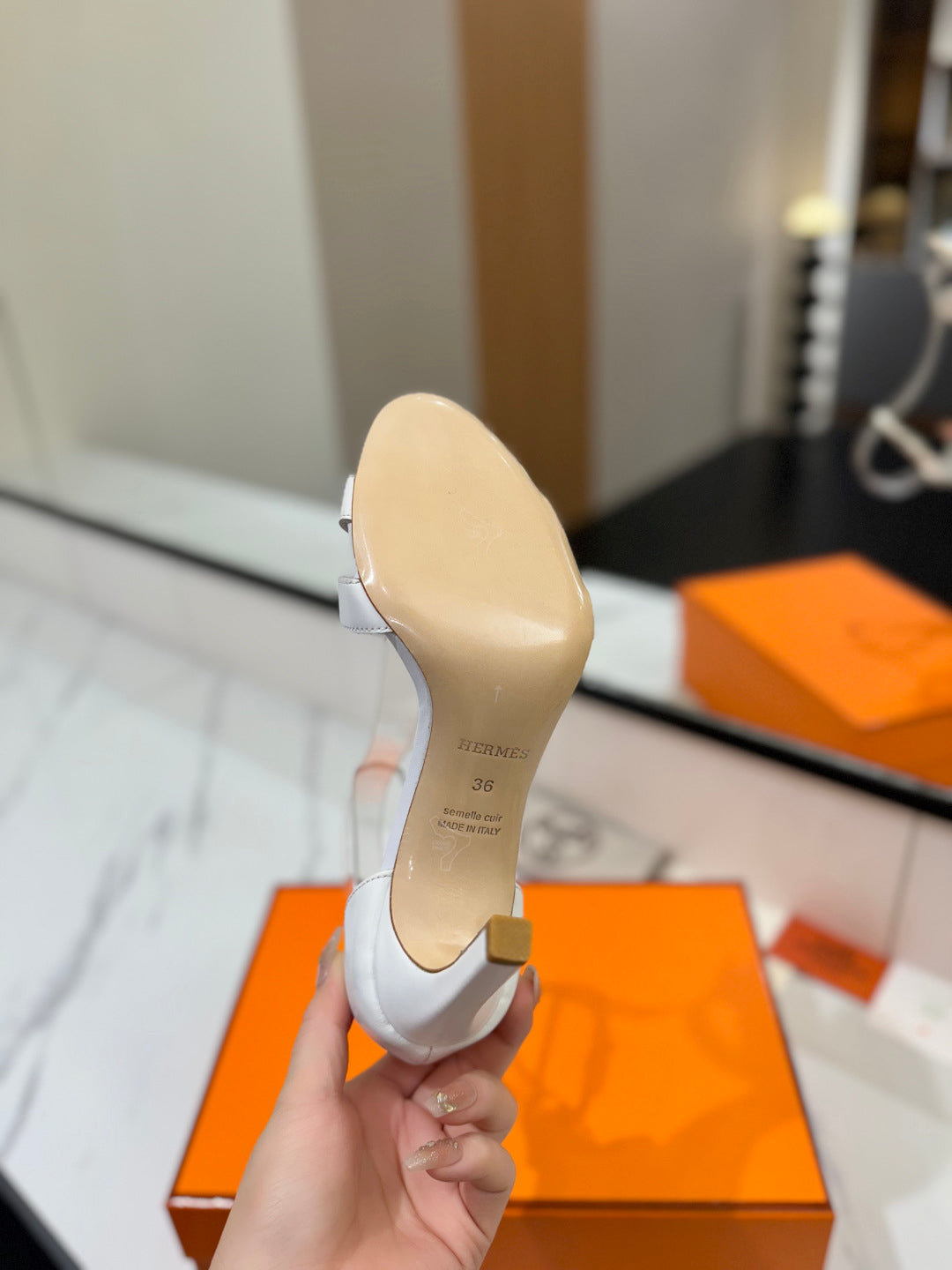 HM Joy 90mm Heeled Sandals White Flat Cowhide 294918