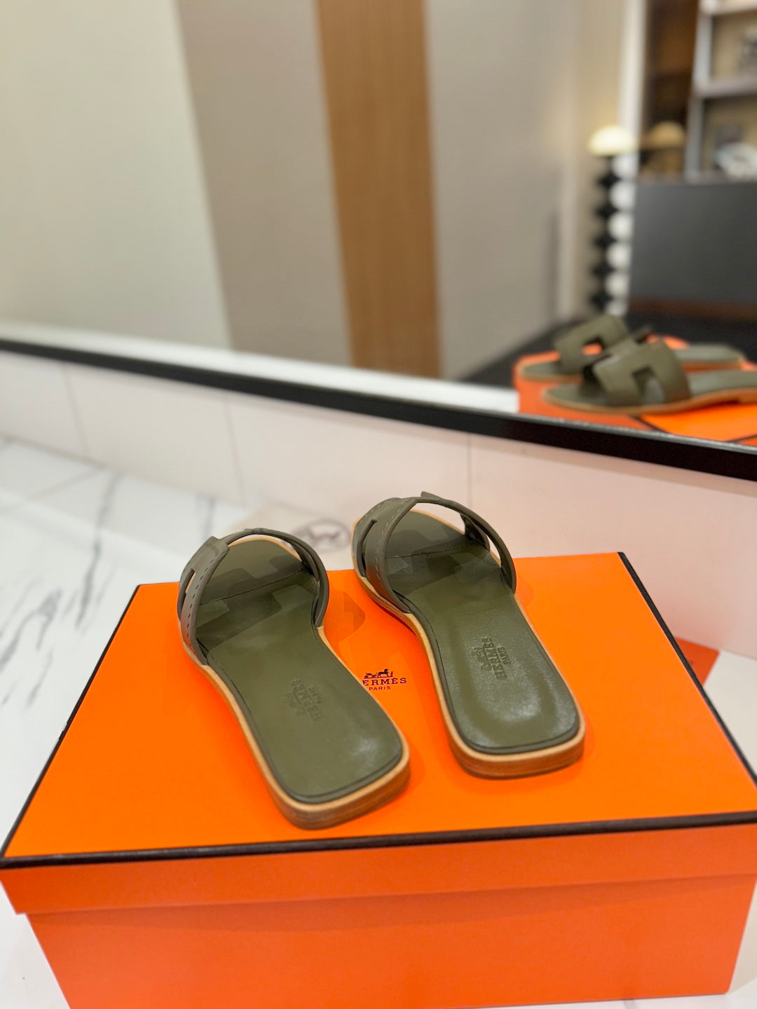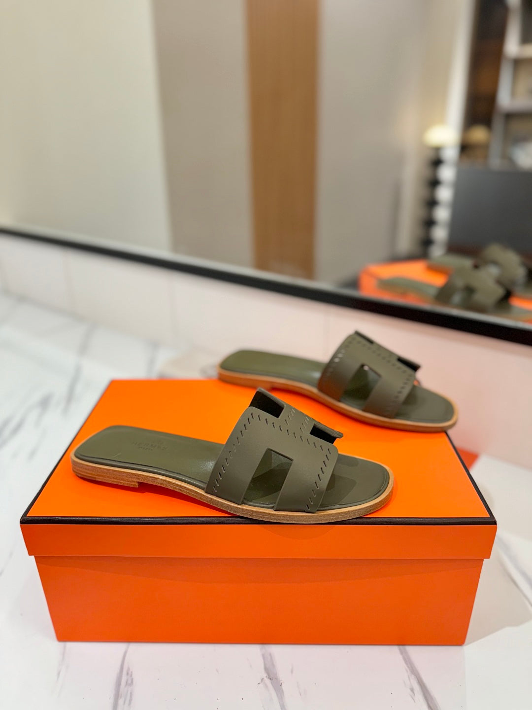 HM Oran Sandal Army Green Perforate Cowhide 294875