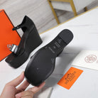 WEDGES SANDALS BLACK LAMBSKIN