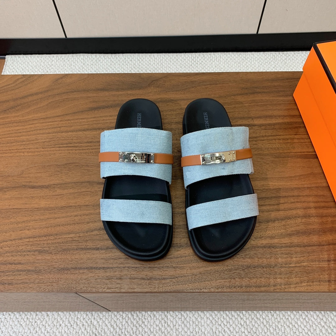 HM Kazimir Sandal Blue Gray Farbic Calfskin 293982