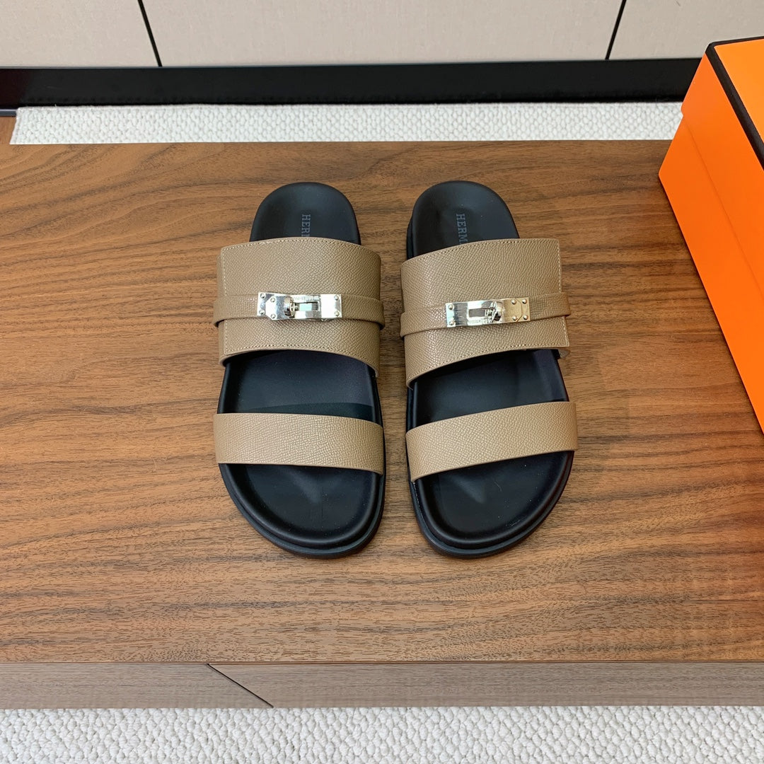 HM Heracles Sandals Etoupe Beige Frabic Calfskin 294069